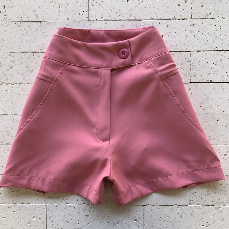 CONJUNTO ALFAIATARIA CROPPED AMARRAÇÃO E SHORT ROSA