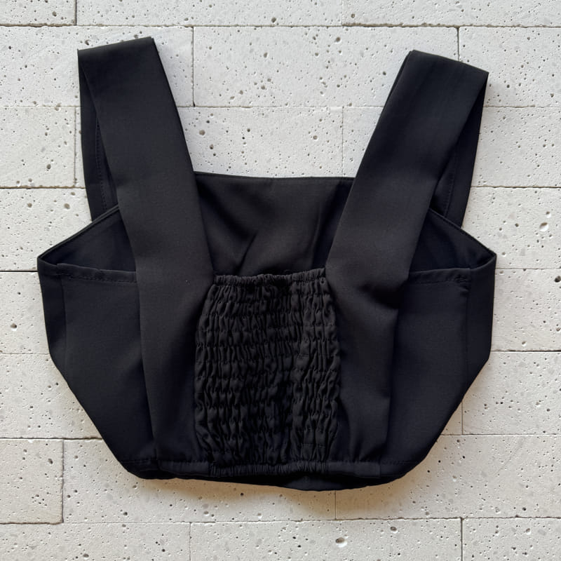 • Cropped com alças largas e lastex nas costas (expansível até 8cm)