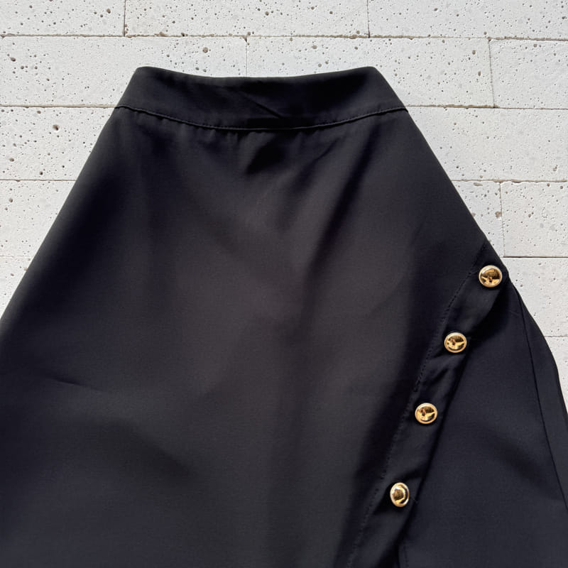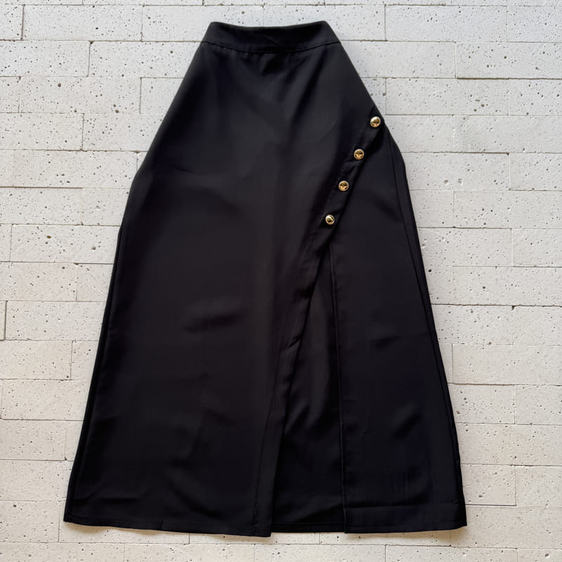 • Saia midi com fenda frontal e detalhe em botões dourados