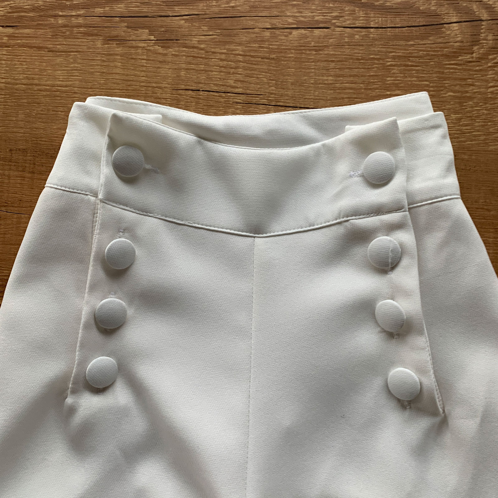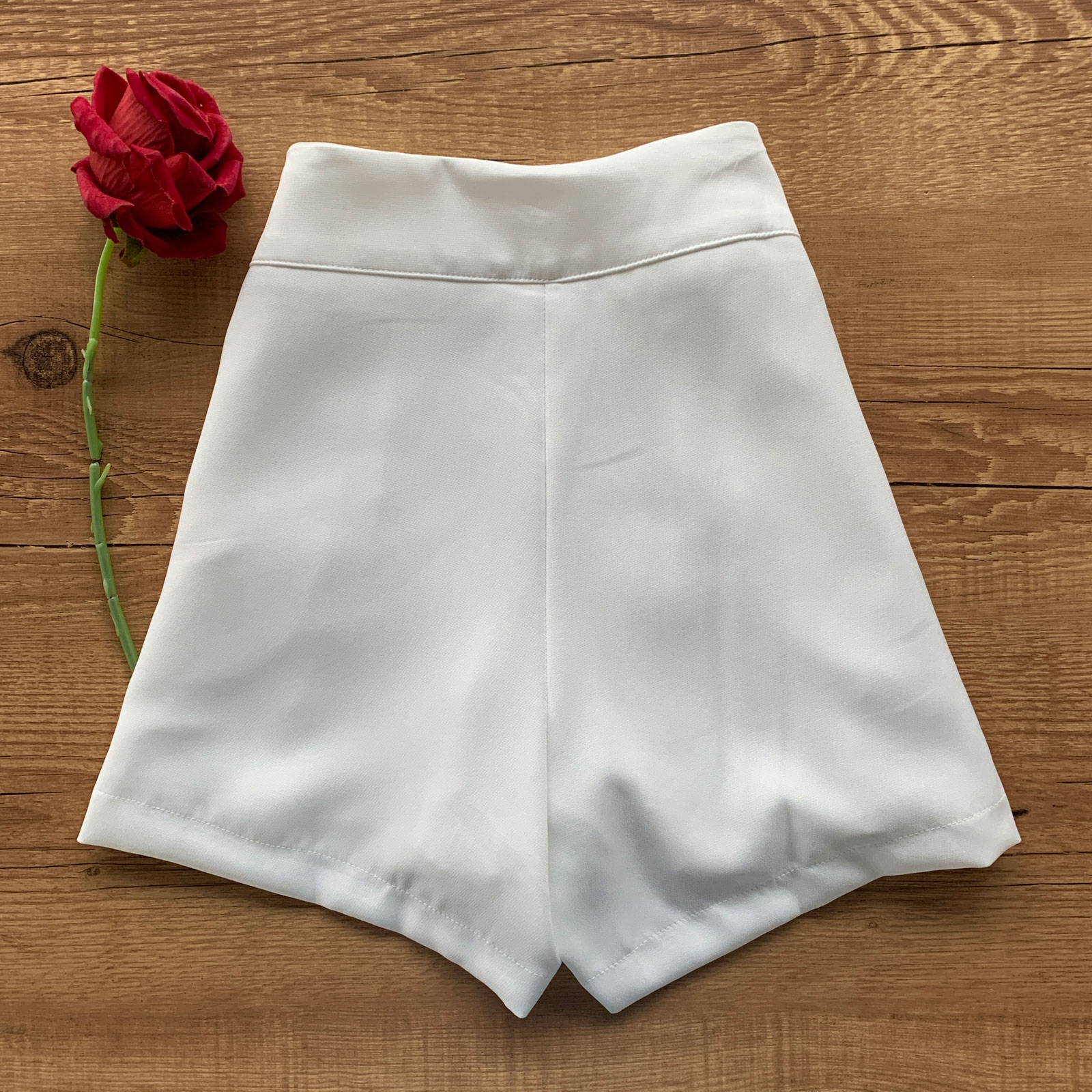 - Short contém abertura em zíper lateral e botões encapados funcionais;