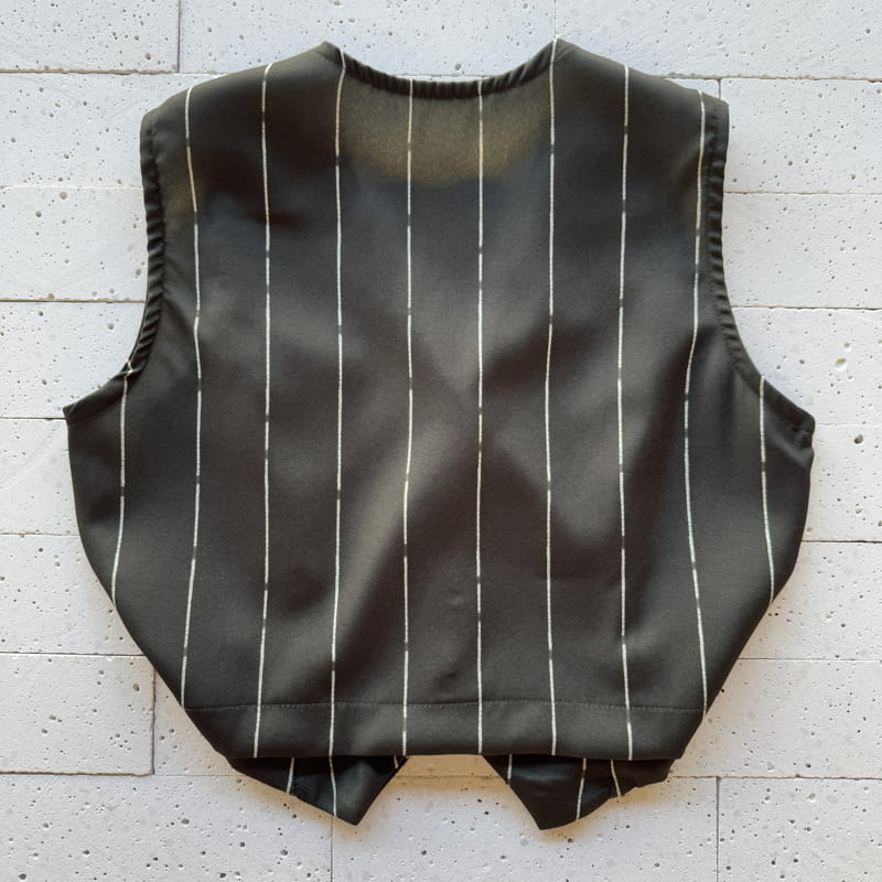 CONJUNTO ALFAIATARIA LISTRADO CROPPED COLETE E SHORT COM CINTO VERDE OLIVA