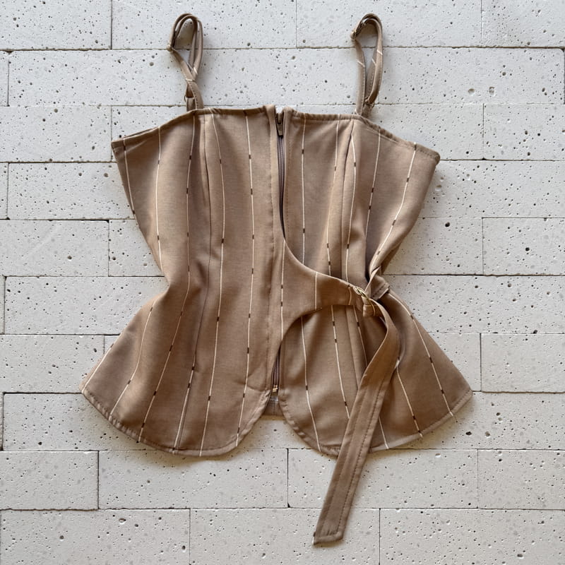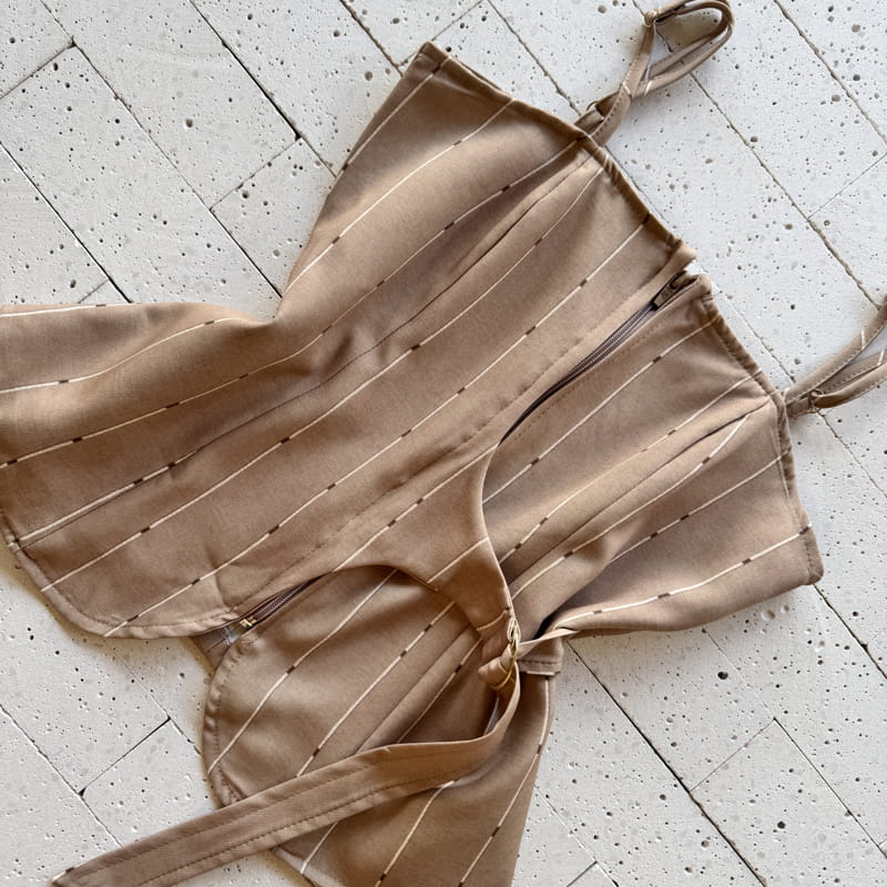 O Conjunto Alfaiataria Listrado Nude combina elegância e estilo contemporâneo para compor looks modernos e versáteis. A regata com alças ajustáveis e fechamento em zíper frontal traz um caimento impecável, além do detalhe de fivela lateral que realça a silhueta. O short saia apresenta cintura média estruturada com botões forrados, garantindo um visual refinado. Feito em tecido de alta qualidade com elastano, o conjunto proporciona conforto e ajuste perfeito ao corpo.