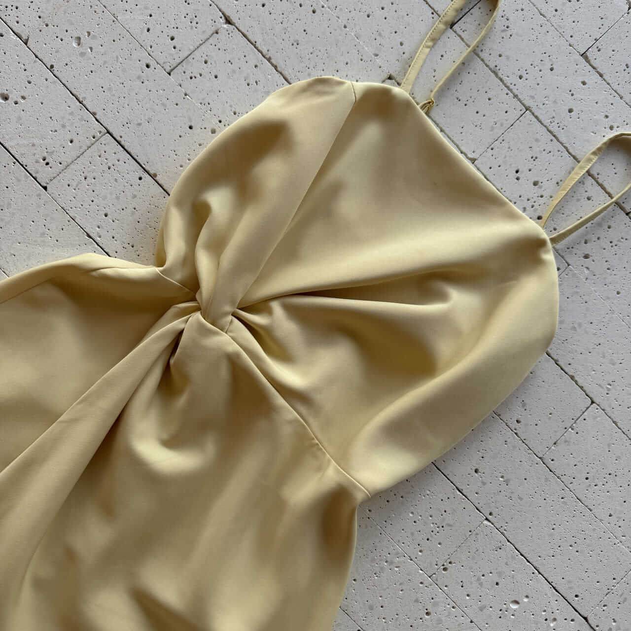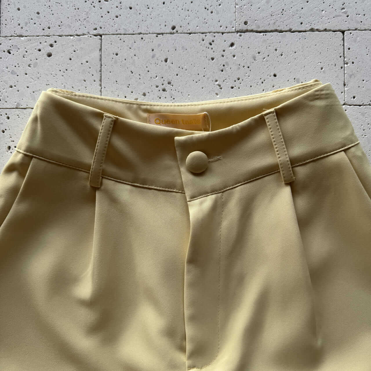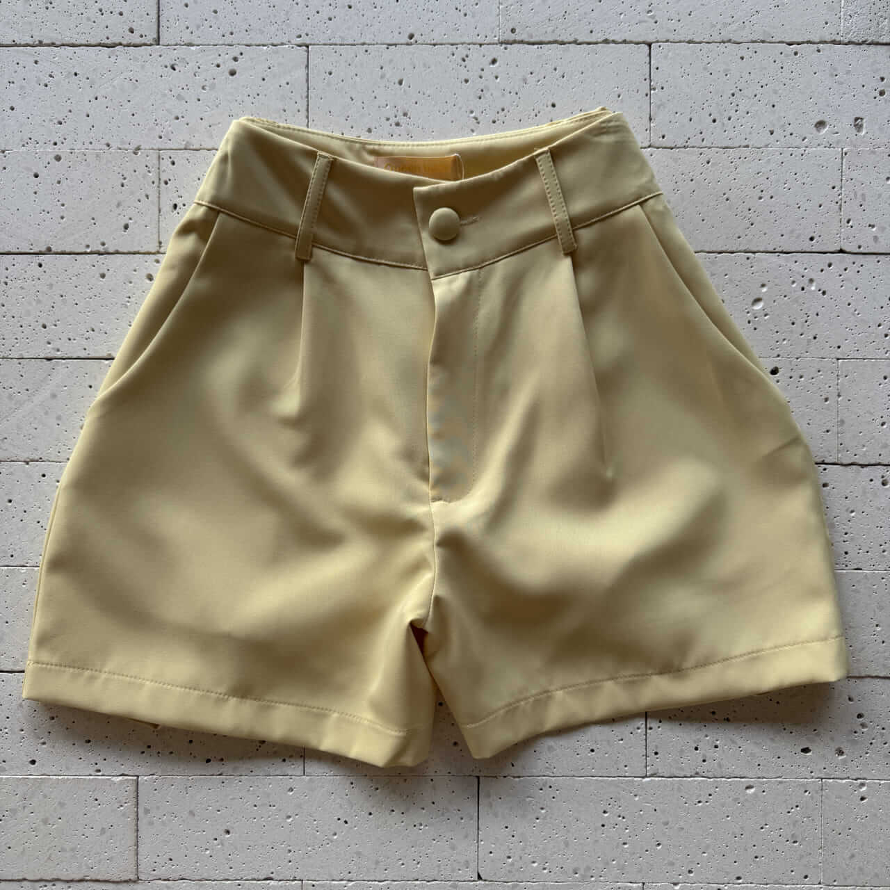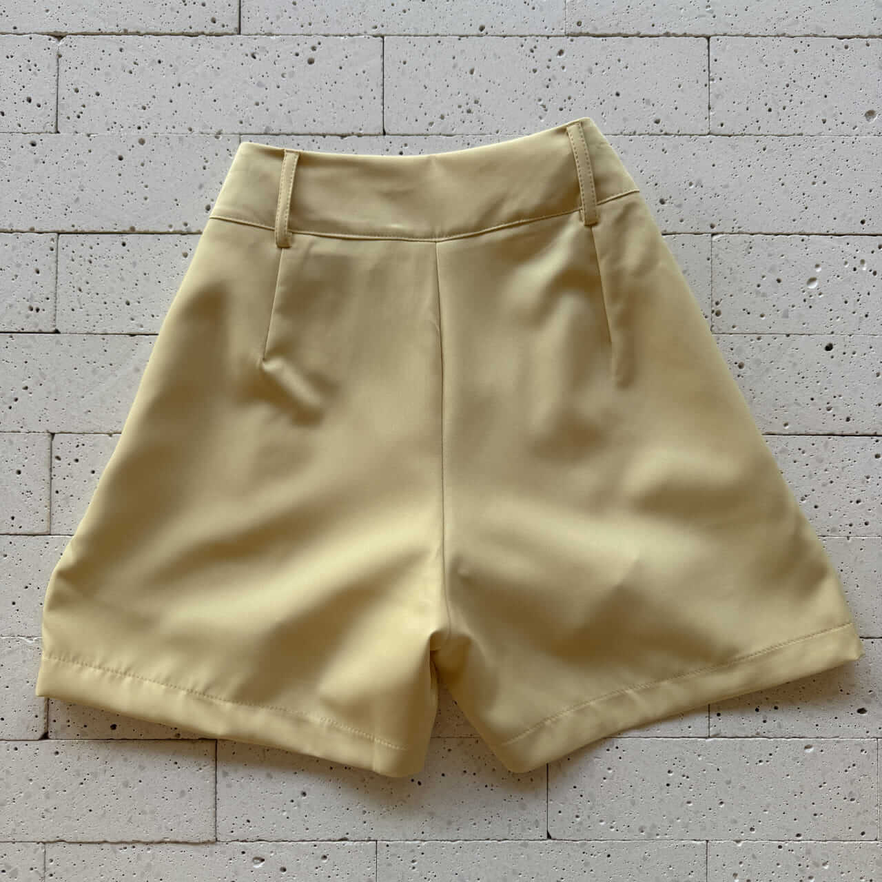 CONJUNTO ALFAIATARIA REGATA ASSIMÉTRICA NÓZINHO E SHORT AMARELO – Elegância e Modernidade