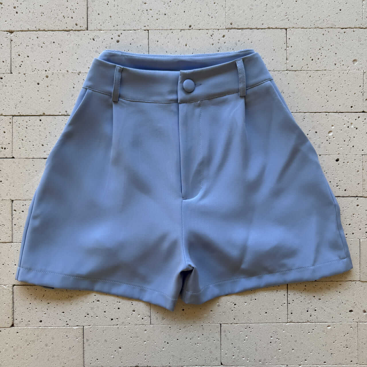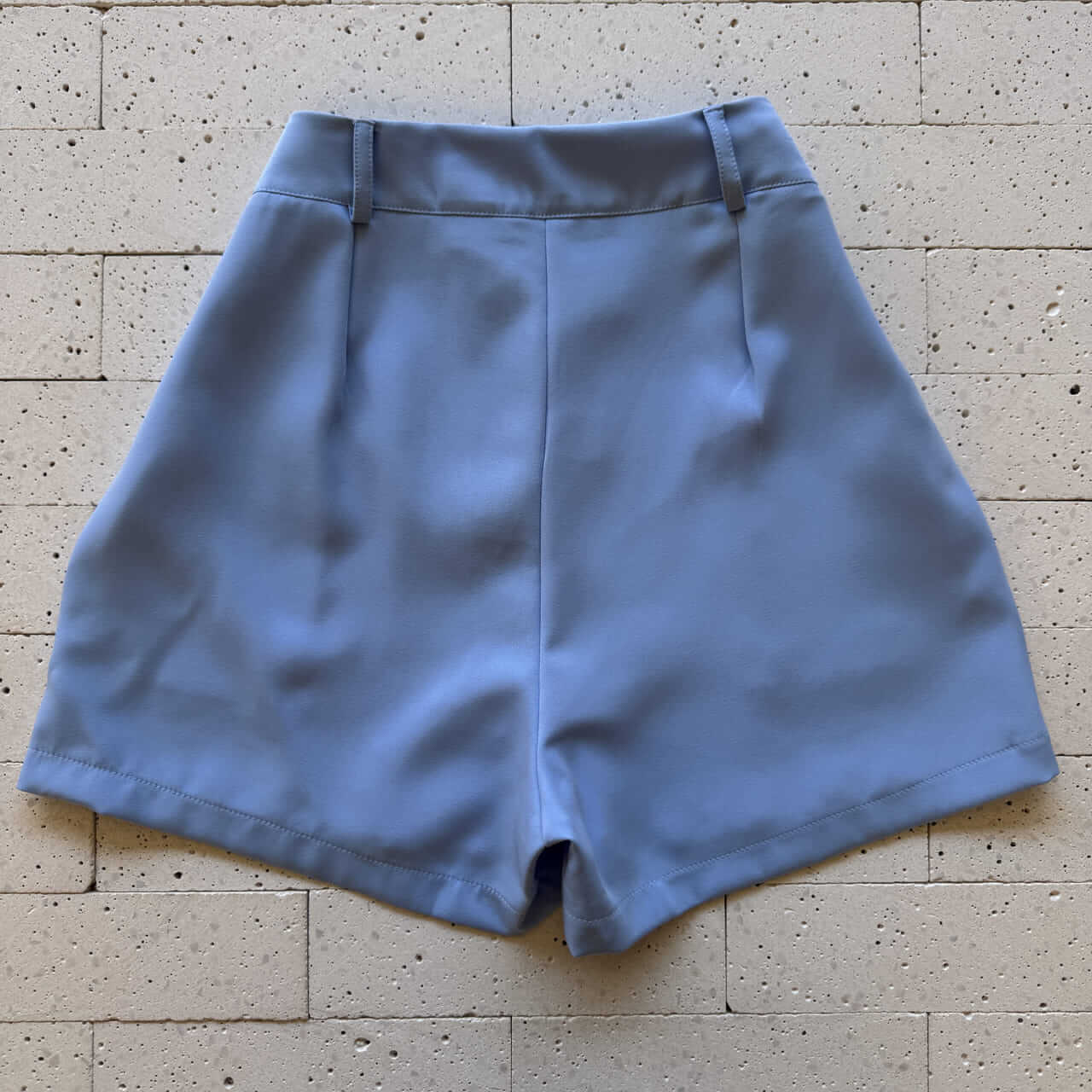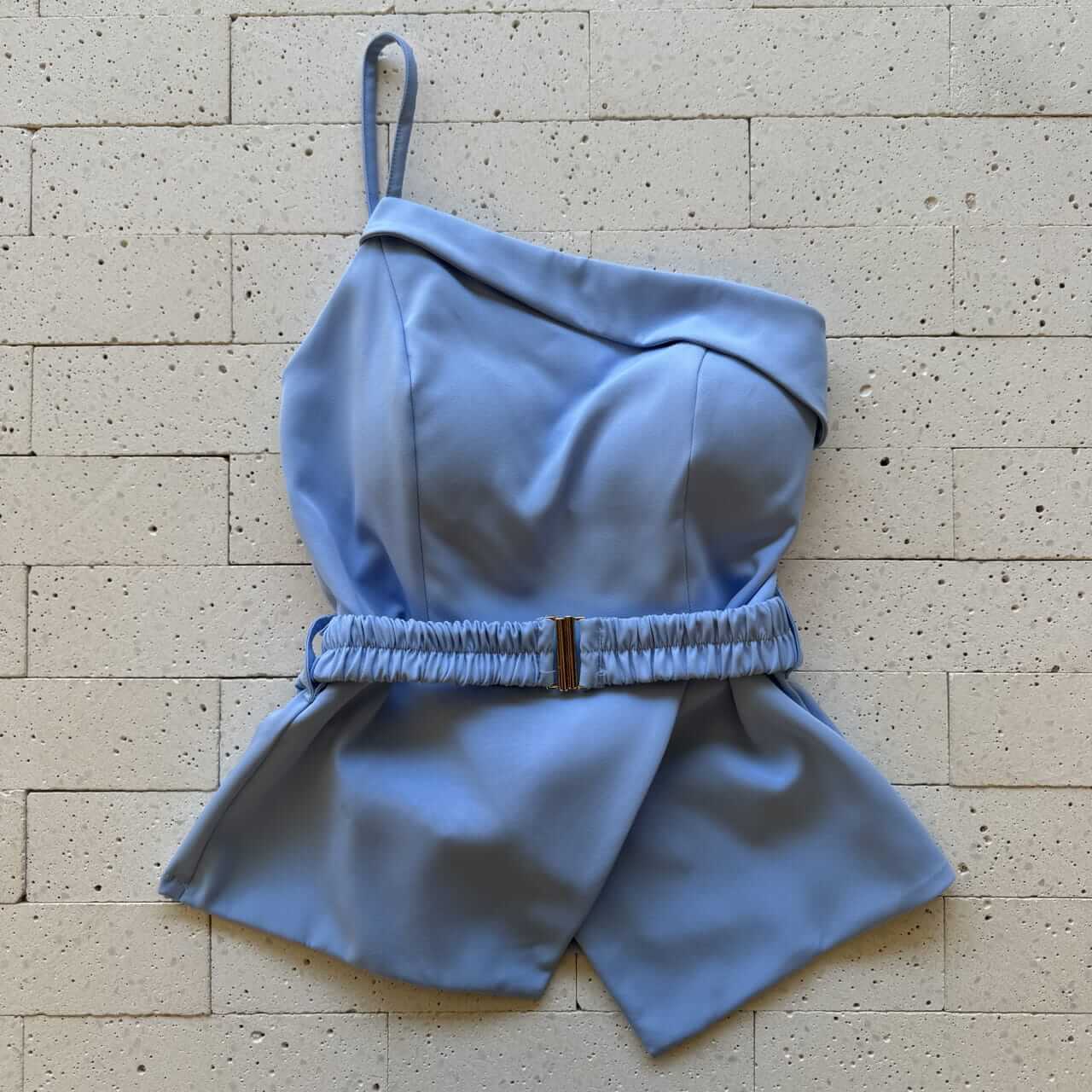CONJUNTO ALFAIATARIA REGATA COM CINTO DRAPEADO E SHORT AZUL