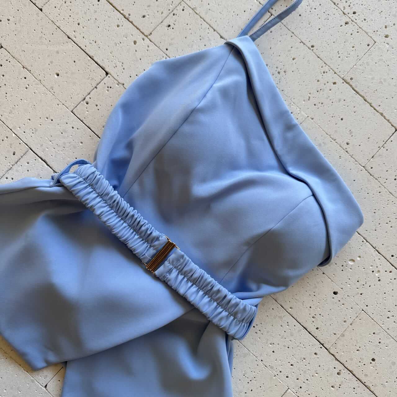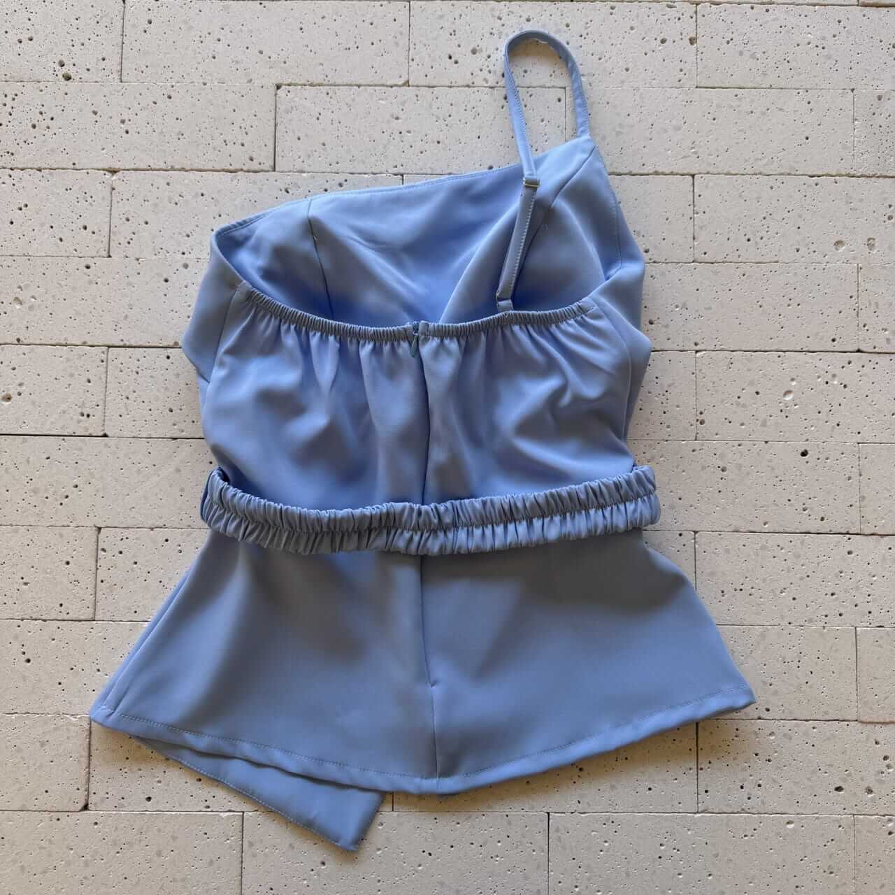 Dondoca_com_br Conjunto Alfaiataria Regata Com Cinto Drapeado E Short Azul