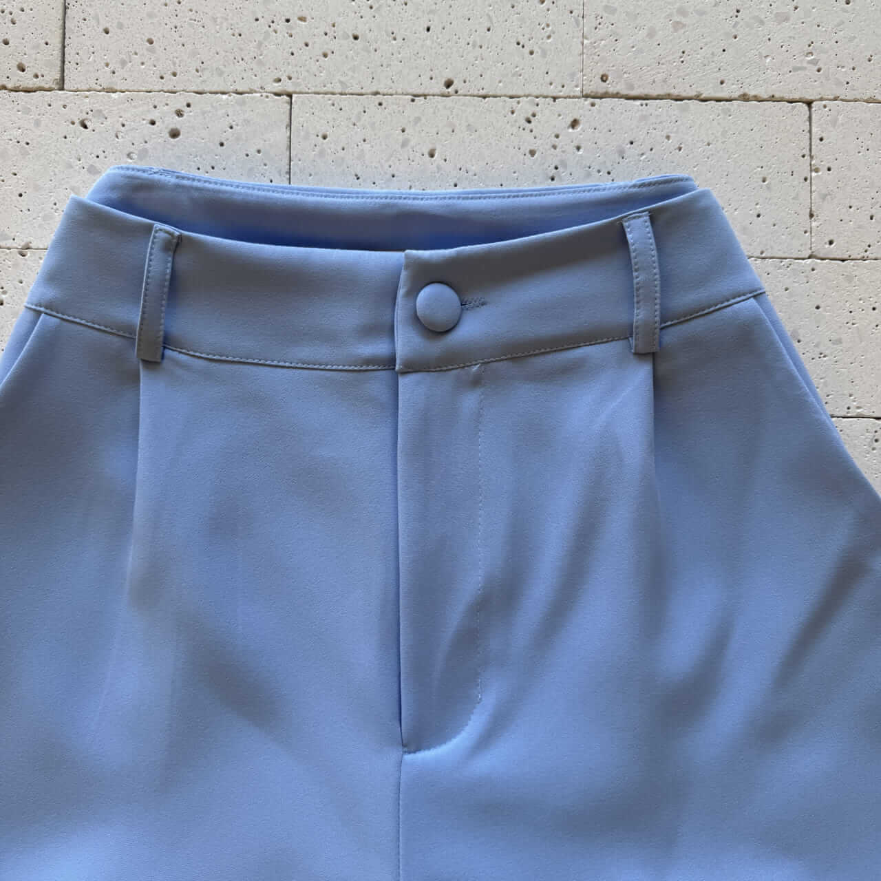 CONJUNTO ALFAIATARIA REGATA COM CINTO DRAPEADO E SHORT AZUL – Elegância Estruturada
