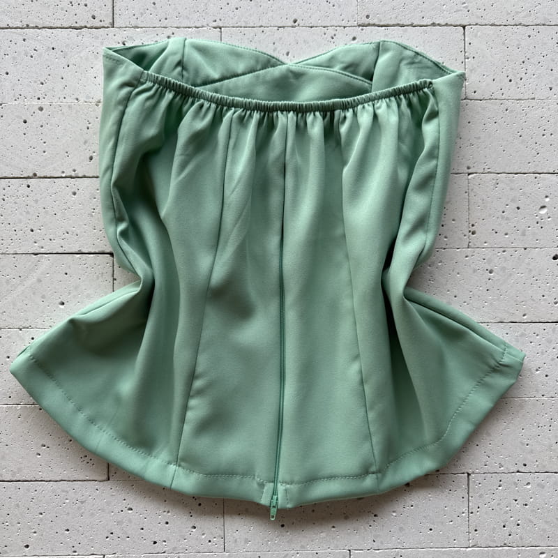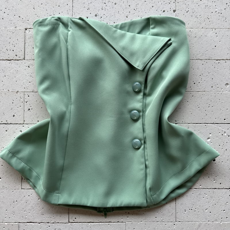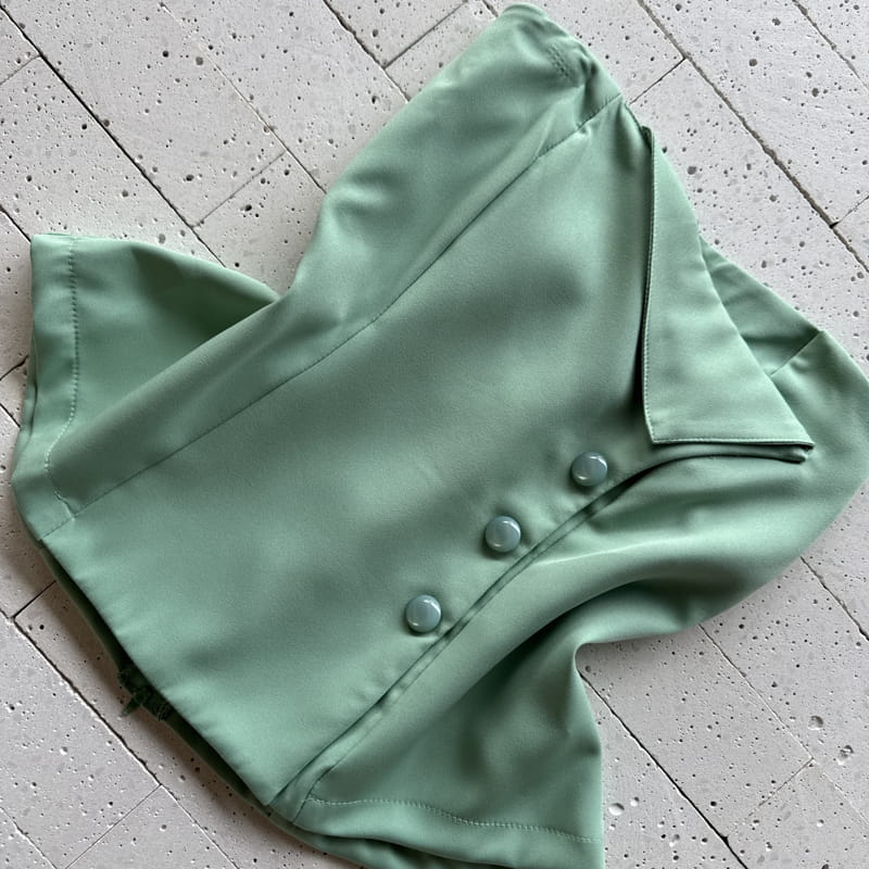 CONJUNTO ALFAIATARIA TOMARA QUE CAIA DETALHE DOBRA E SHORT SAIA VERDE – Elegância com frescor