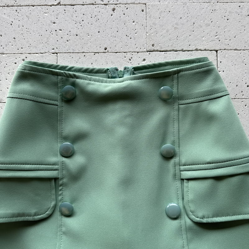 Este conjunto verde em alfaiataria é um verdadeiro charme para dias que pedem elegância com leveza. O cropped tomara que caia possui estrutura levemente acinturada com detalhe dobrado no decote e três botões forrados decorativos na parte frontal, além de elástico nas costas e fechamento em zíper para maior conforto e ajuste. A peça acompanha short saia com design moderno, bolsos frontais aplicados com lapela e botões forrados que garantem um visual sofisticado e fashionista. Um conjunto impecável para looks estilosos e versáteis.