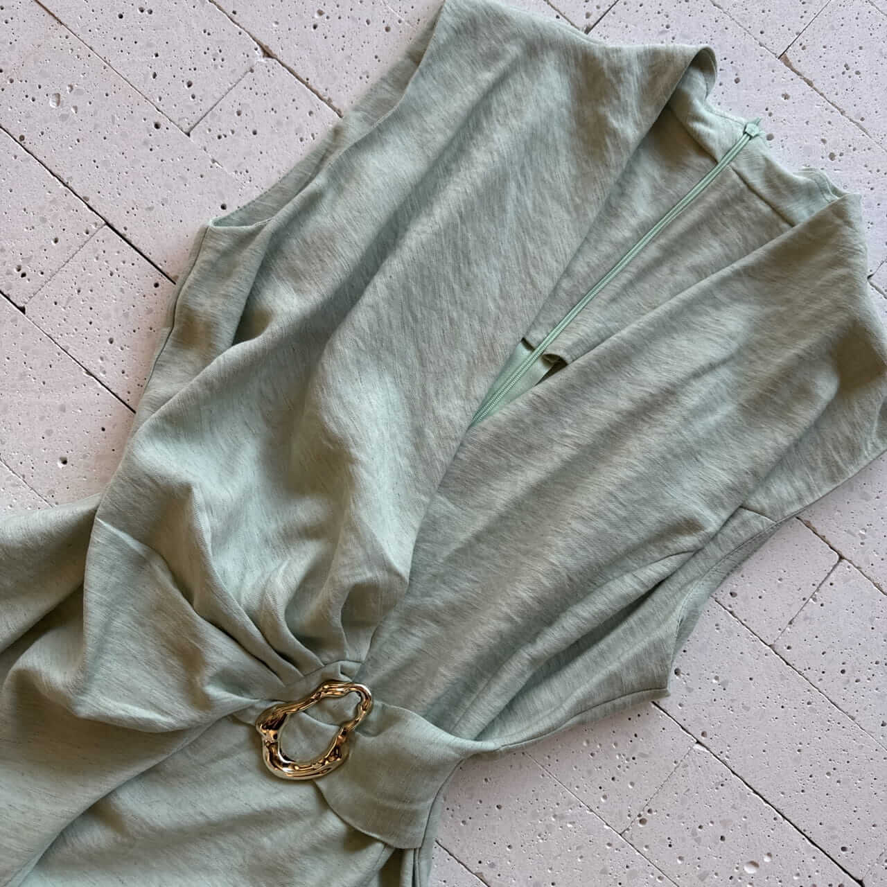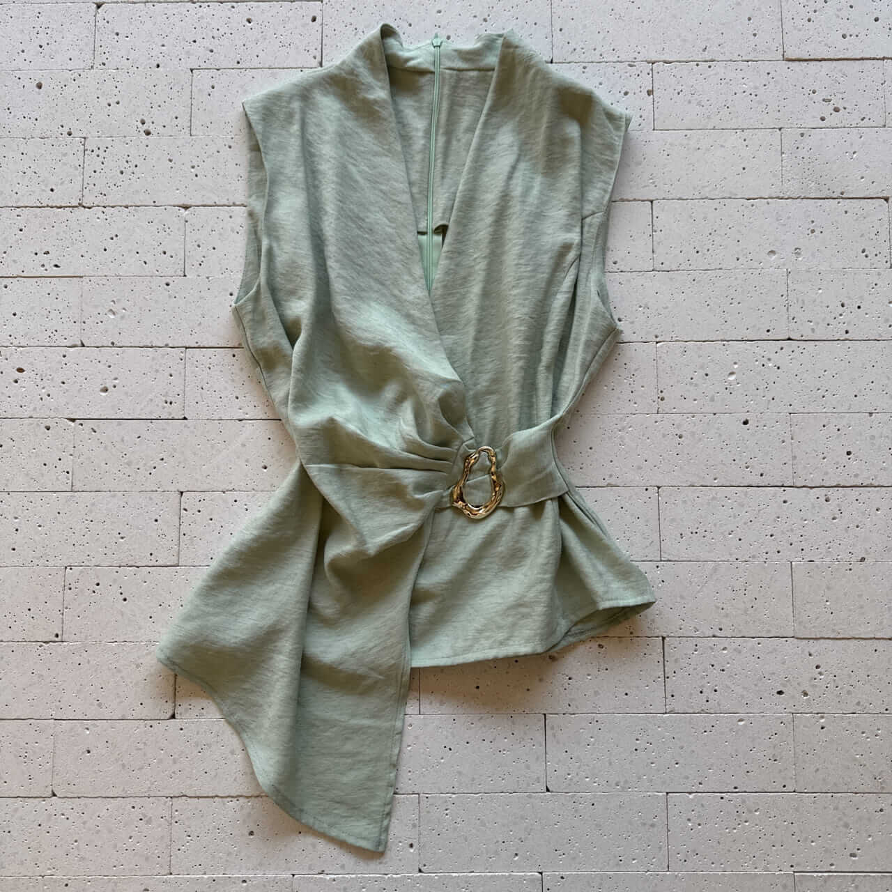 - Blusa com fivela dourada decorativa na lateral