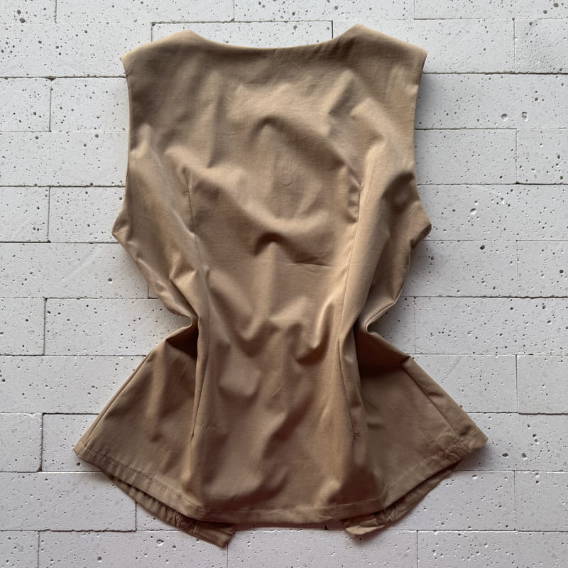 CONJUNTO BLUSA BOTÕES BARRA ASSIMÉTRICA E SHORT NUDE