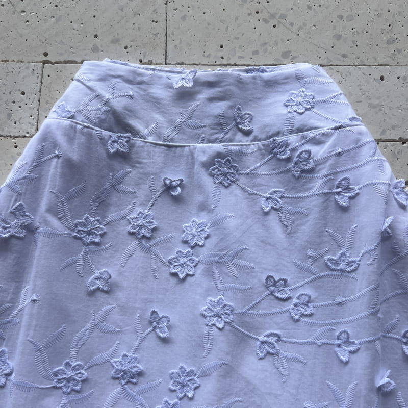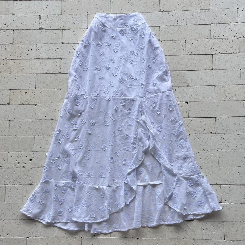 CONJUNTO BORDADO CROPPED E SAIA MIDI COM FENDA OFF