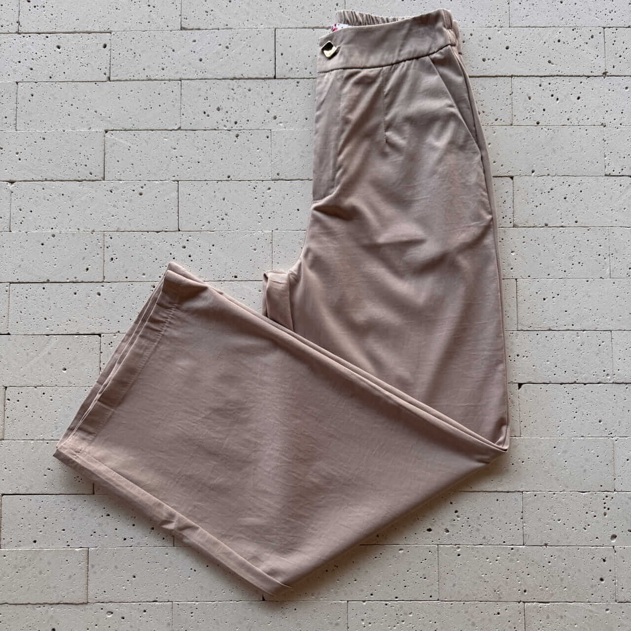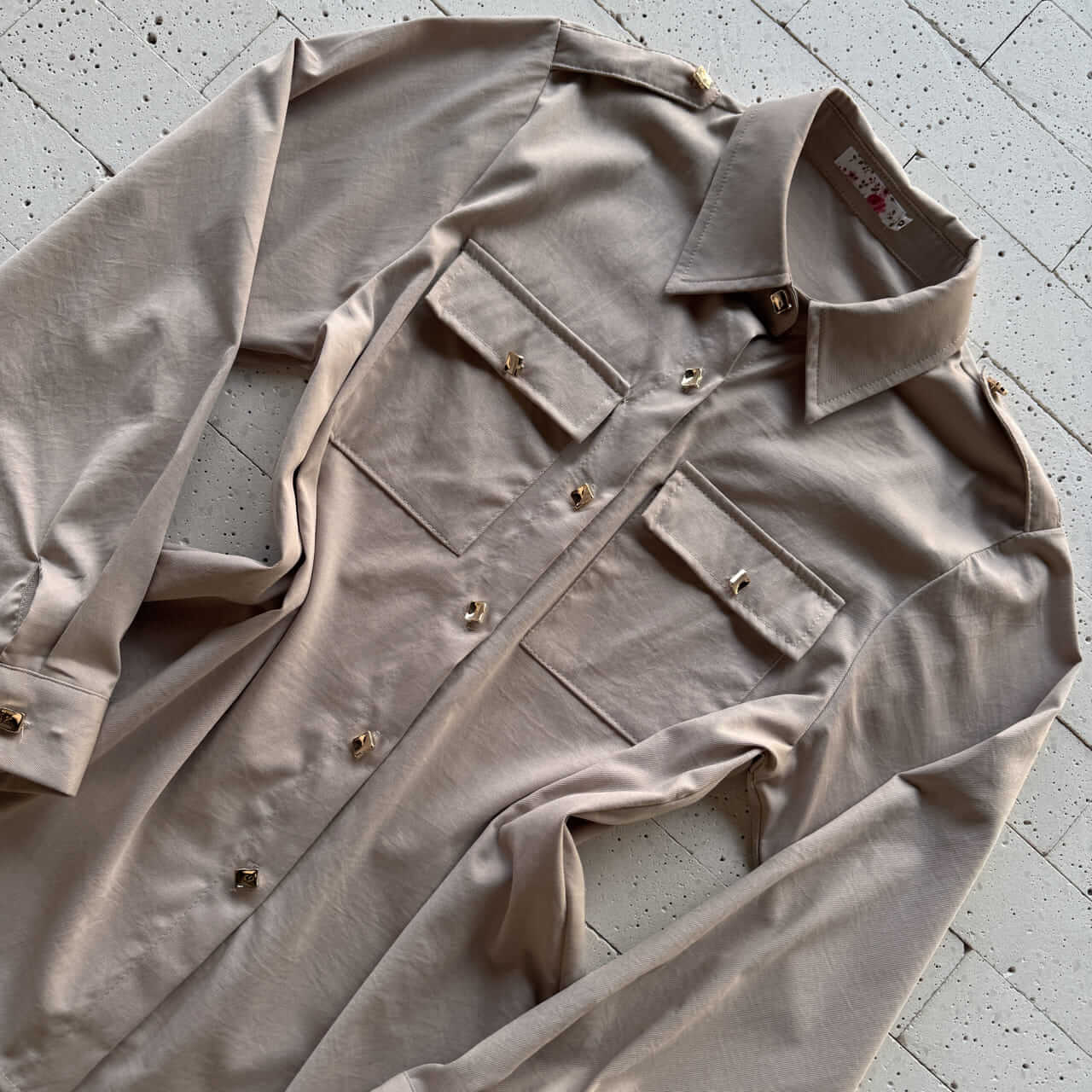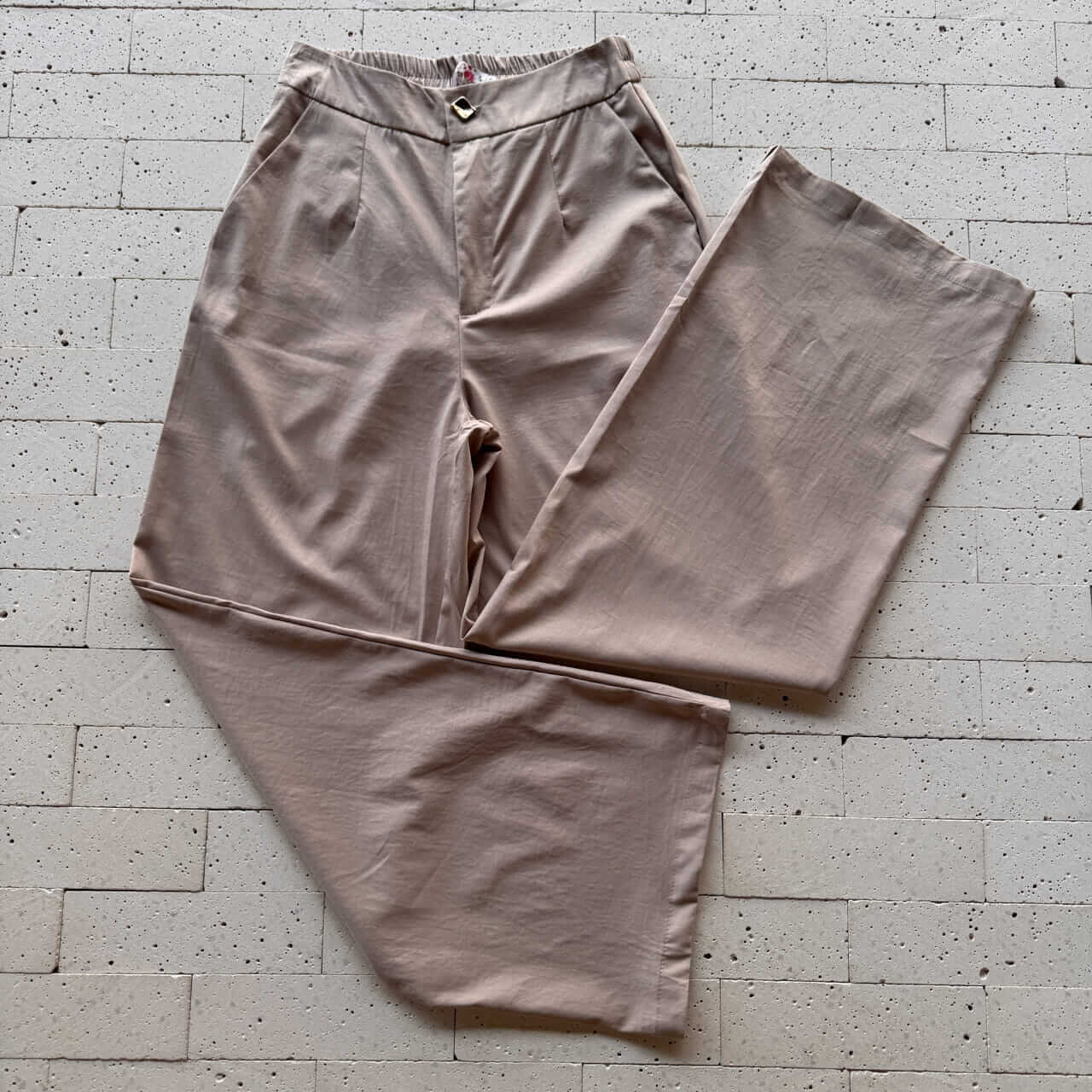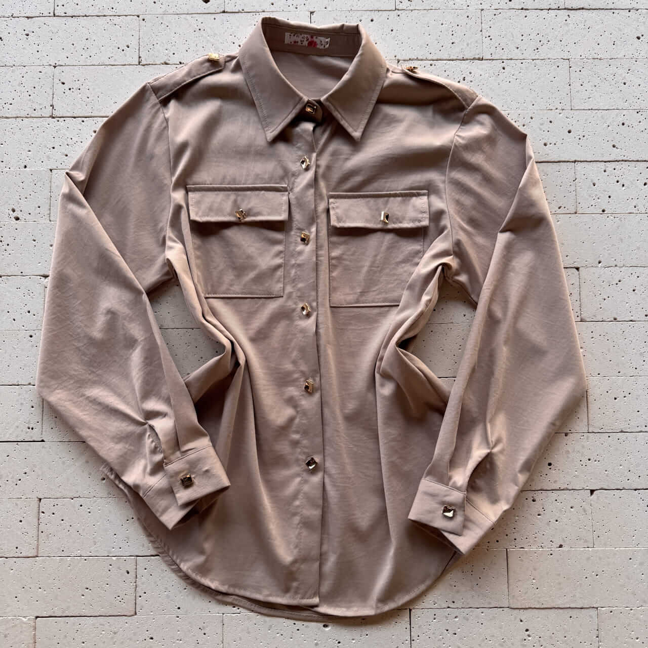 CONJUNTO CAMISA ALONGADA DETALHE BOTÕES E PANTALONA BEGE
