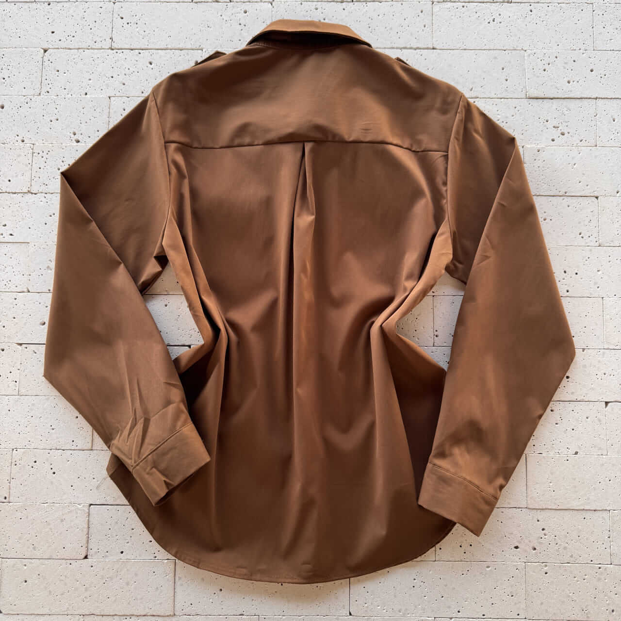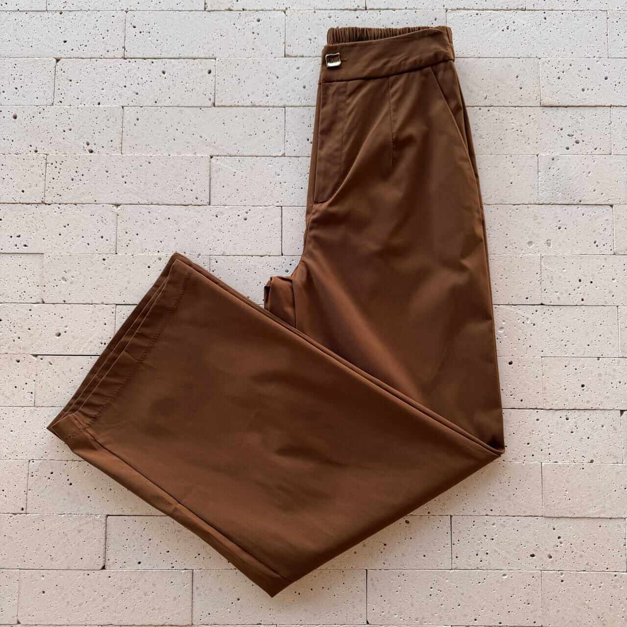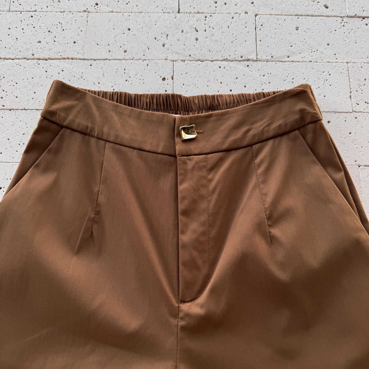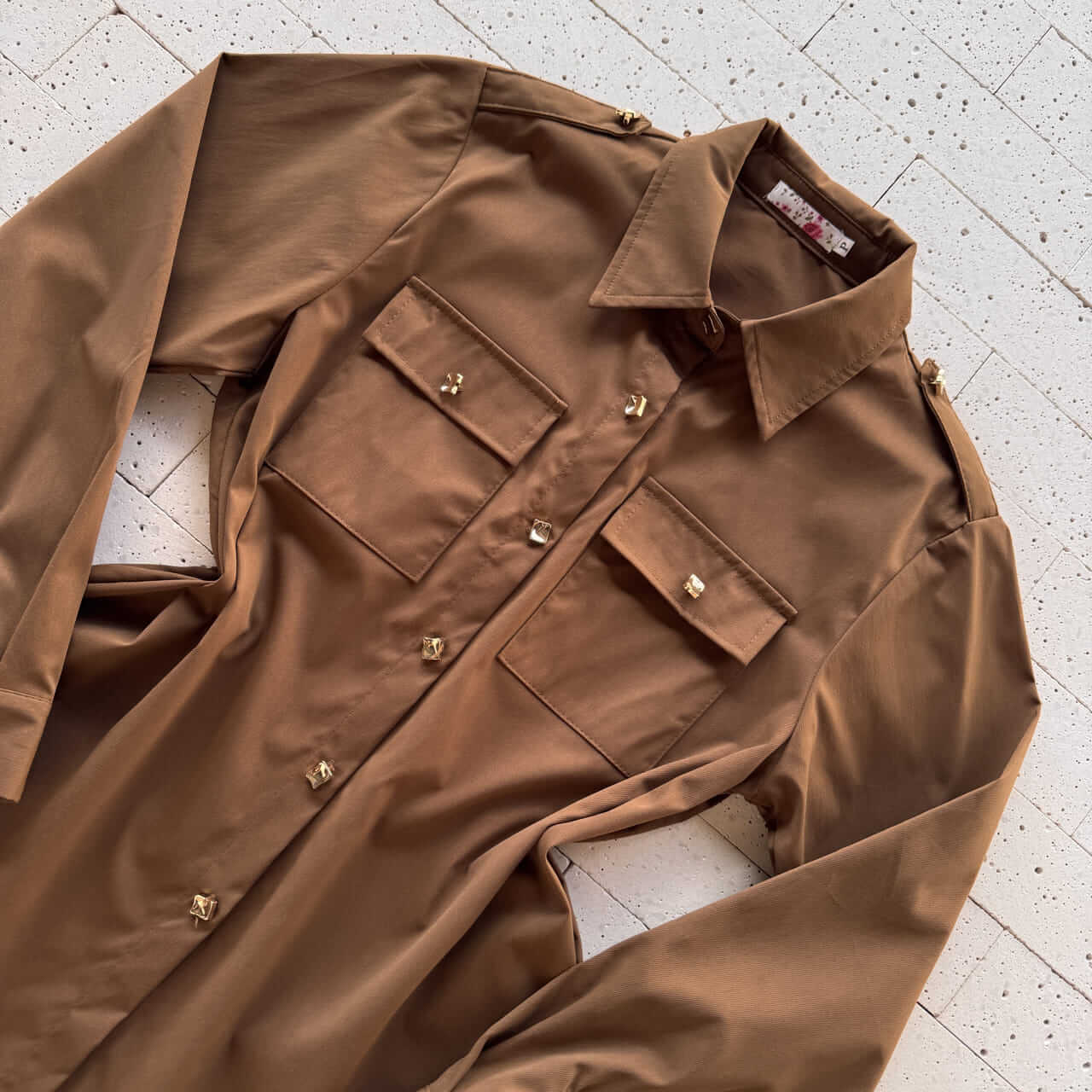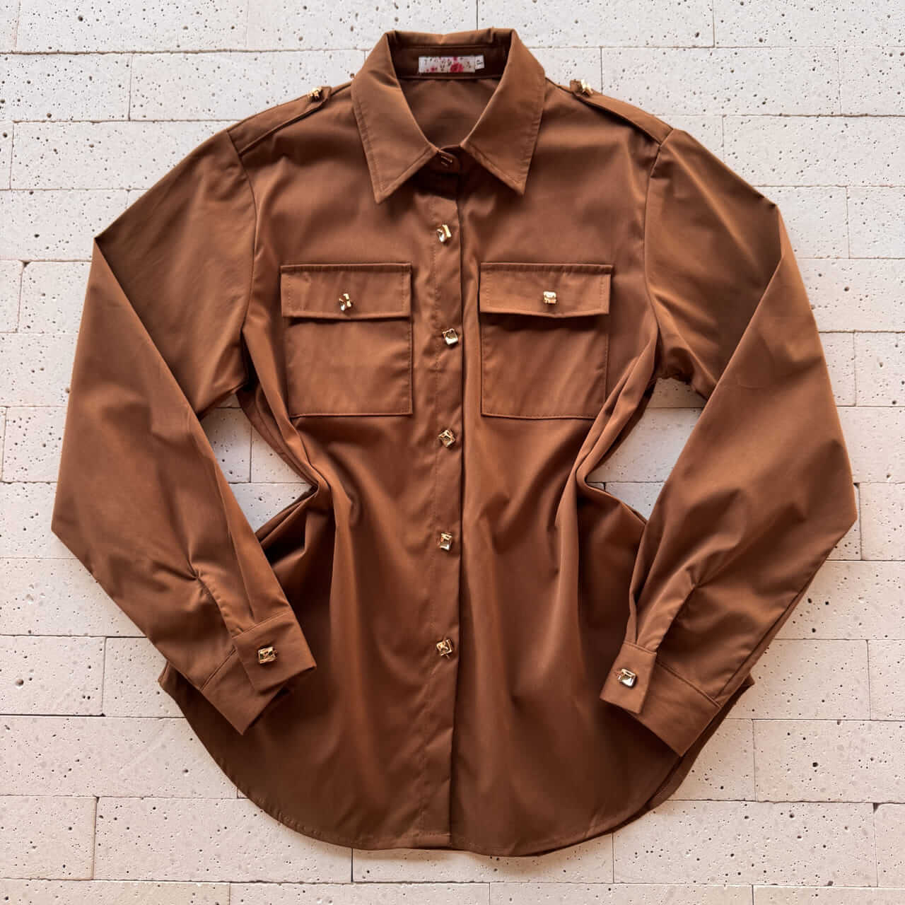 CONJUNTO CAMISA ALONGADA DETALHE BOTÕES E PANTALONA CAFÉ