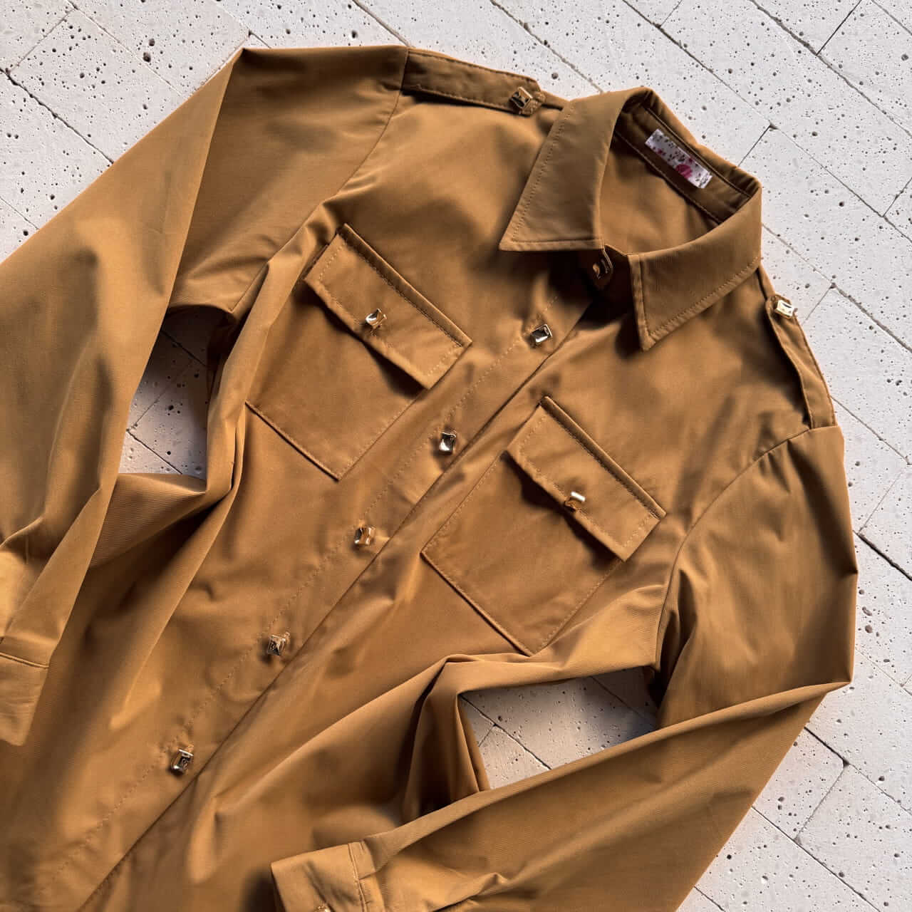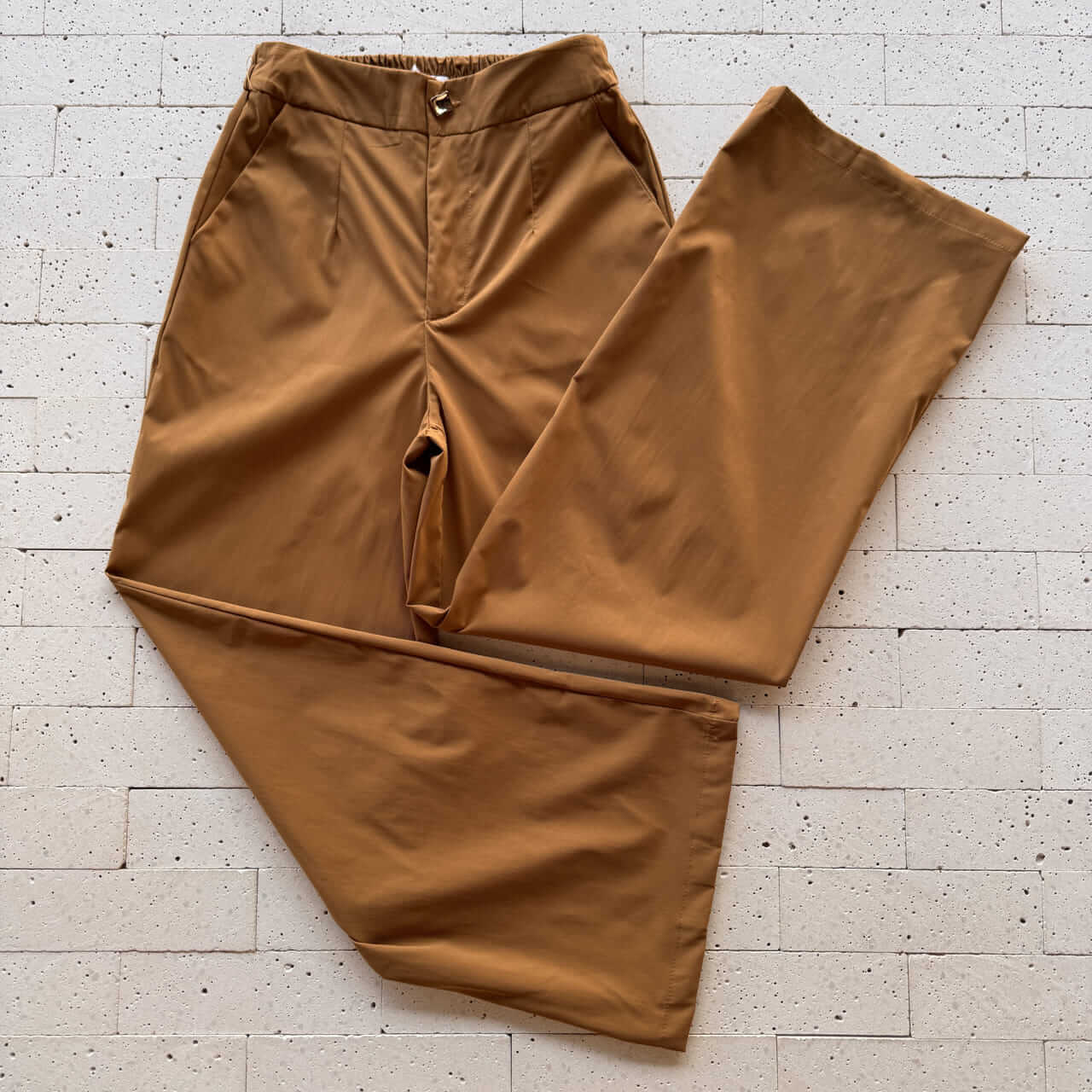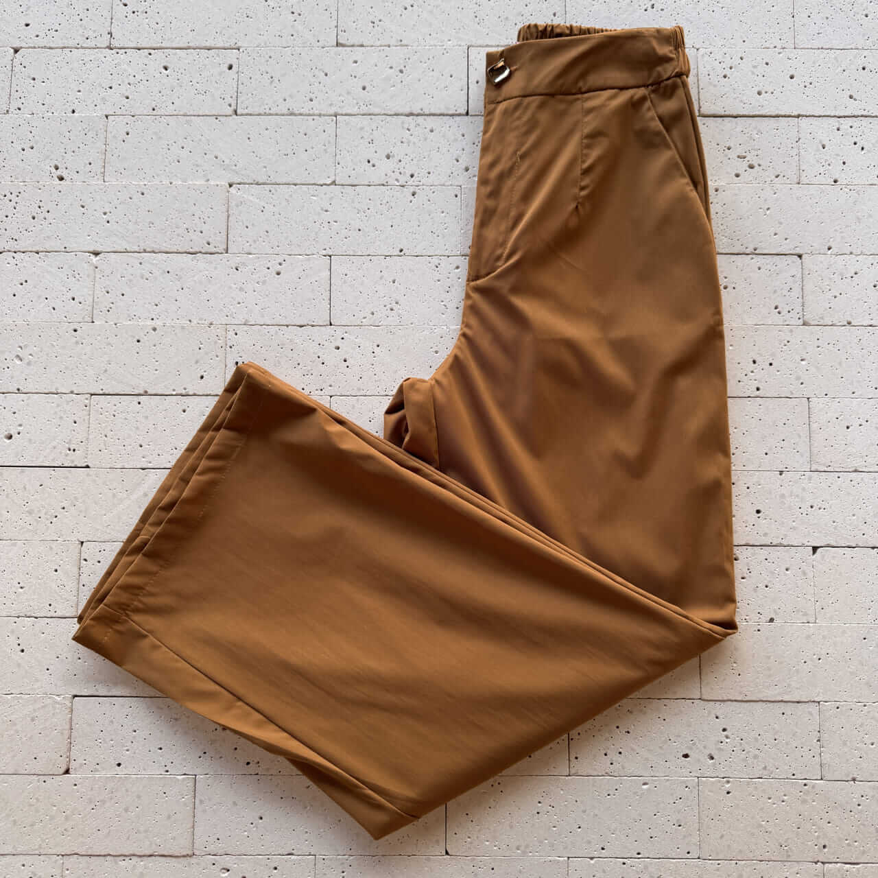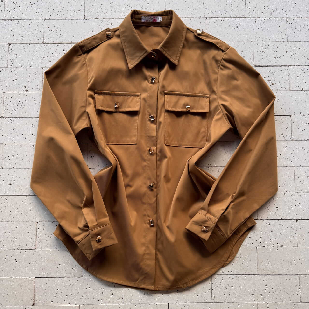 CONJUNTO CAMISA ALONGADA DETALHE BOTÕES E PANTALONA CARAMELO