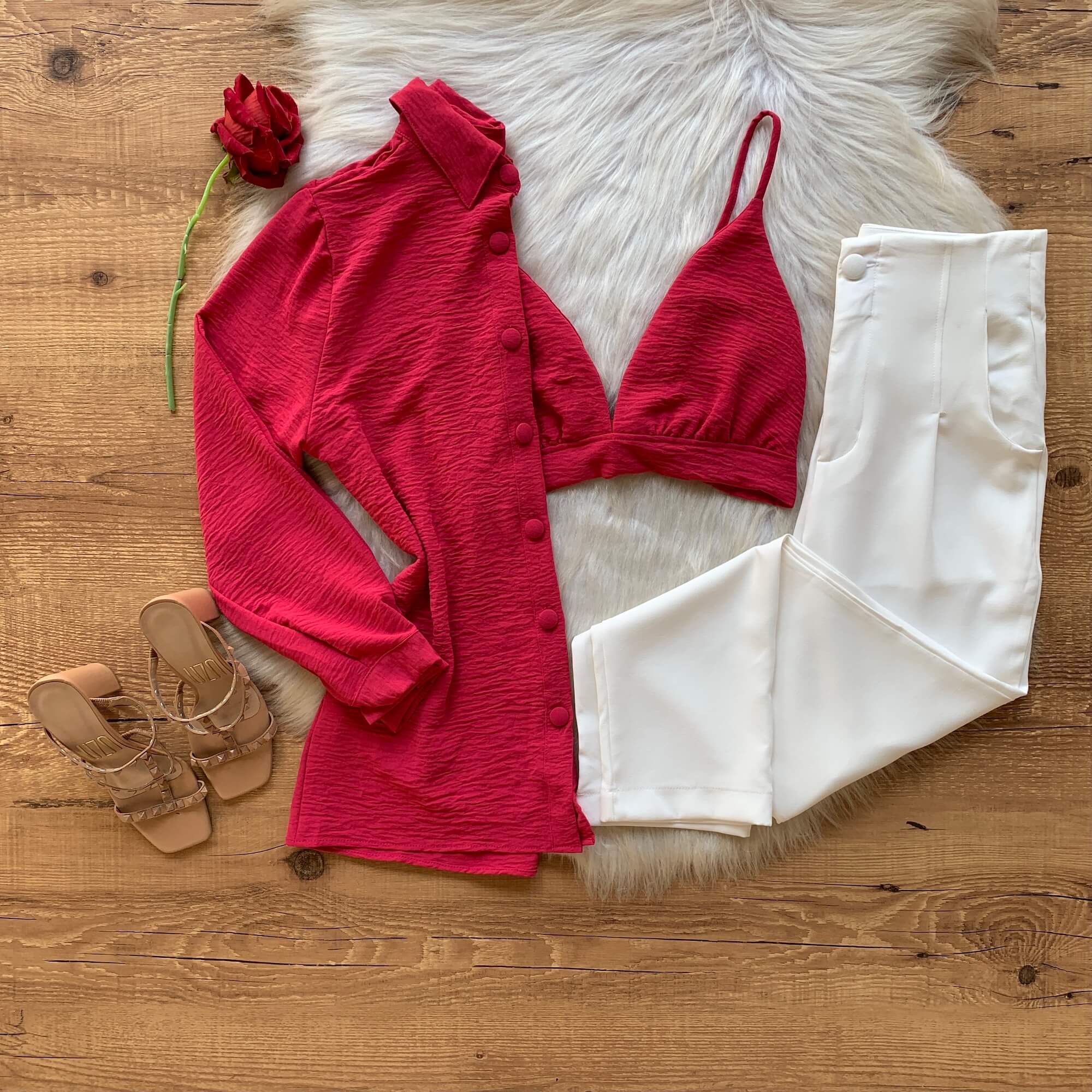 A camisa e cropped conjunto estão entre os mais queridinhos das tendências atuais! Experimente usar com calças jogger que trarão um charme e um aspecto descolado a composição. Outra ideia para ocasiões mais clássicas seria a combinação de calças color, slouchy ou wide leg., e se quiser ainda obter produções para dias de temperaturas altas e ocasiões despojadas serial ideal o uso de shorts de cintura alta como os jeans. Invista em acessórios como bolsas, joias, e óculos de sol, durante o dia. Fique linda em pouco tempo com nosso conjunto feminino em crepe.