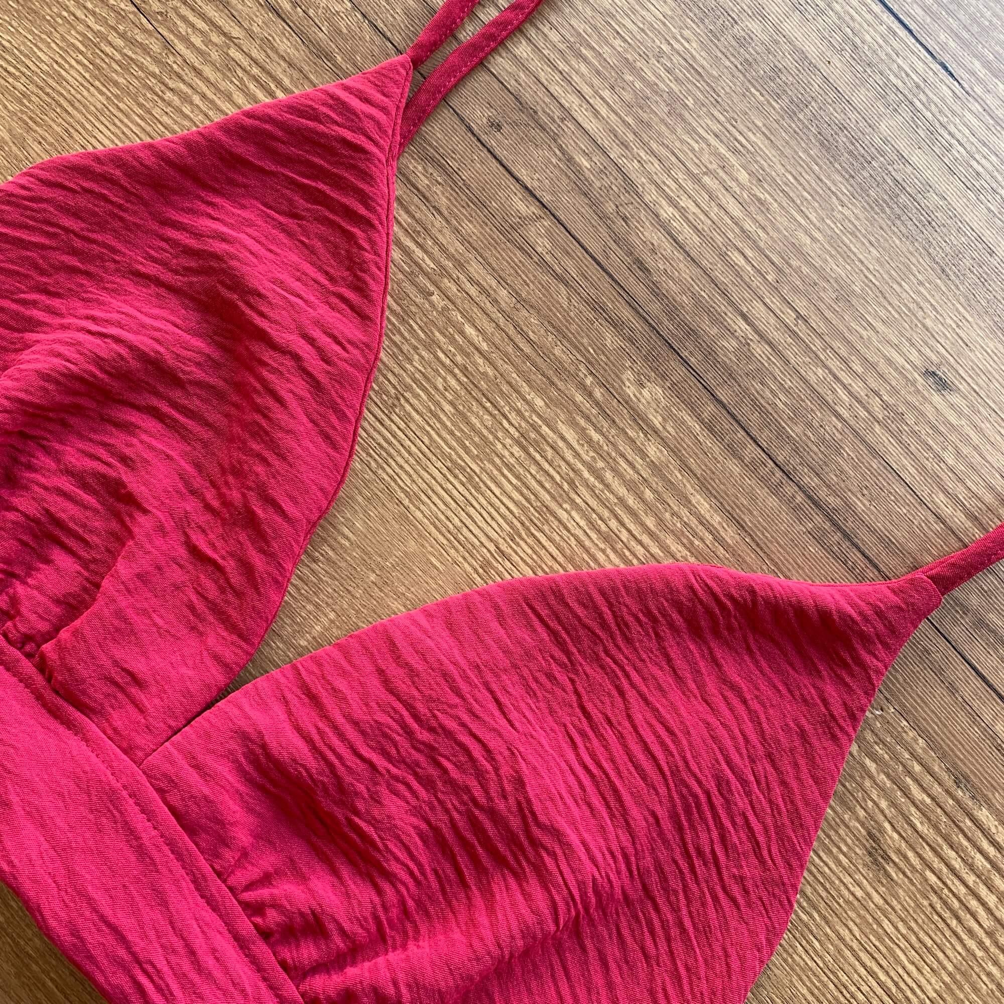 - Cropped possui abertura em faixa para amarração;