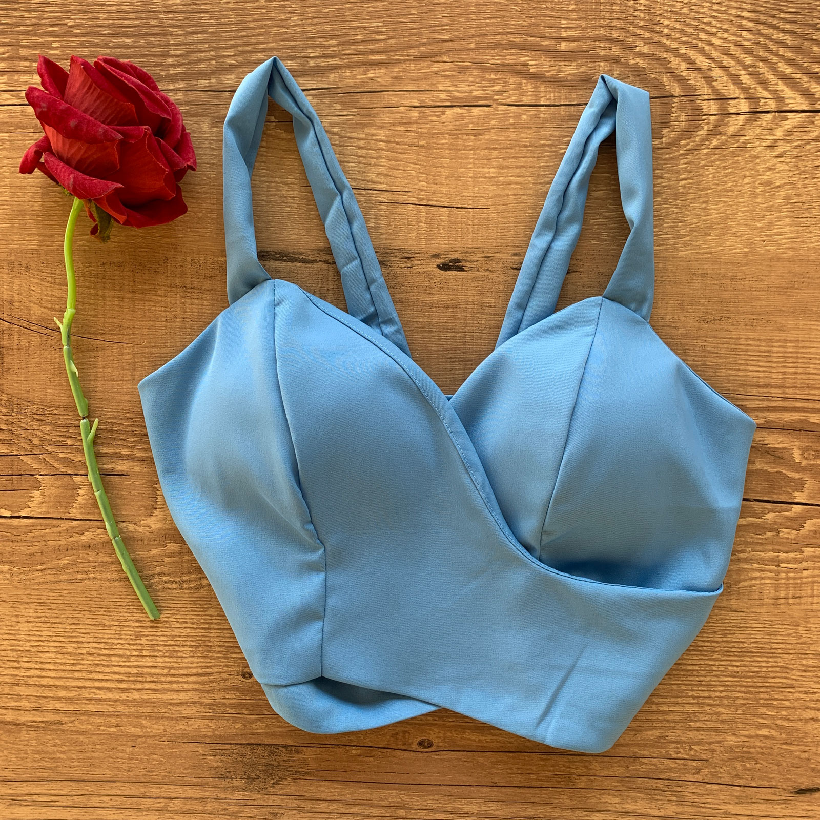 Como usar seu Conjunto com Bojo Cropped Transpassado e Calça Azul