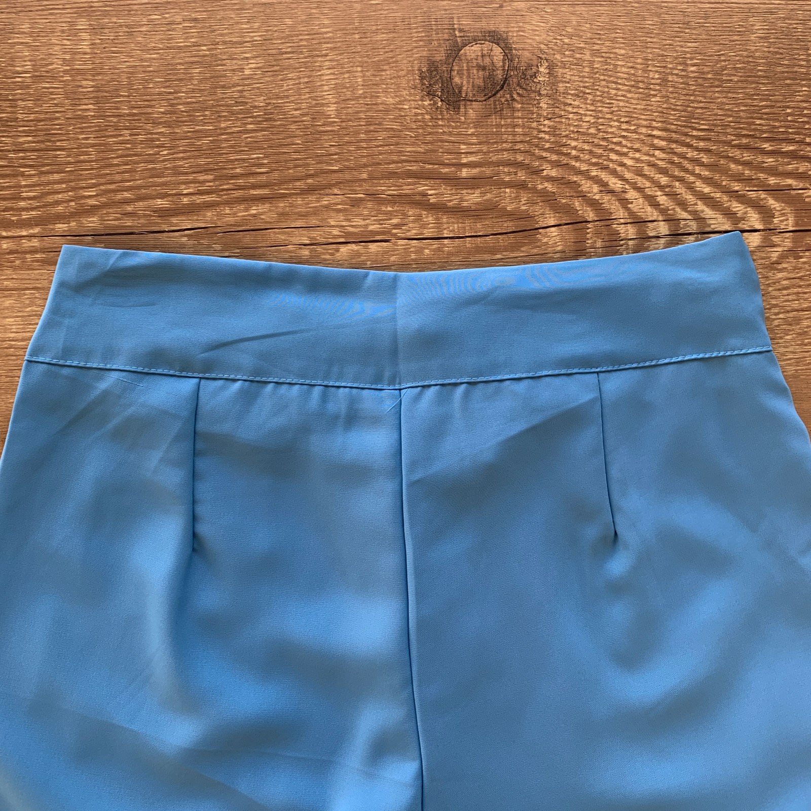 - Possui pregas laterais no cós;