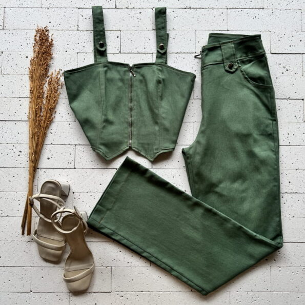 CONJUNTO COTTON CROPPED E CALÇA DETALHES EM ZÍPER VERDE – Sofisticação e Modernidade