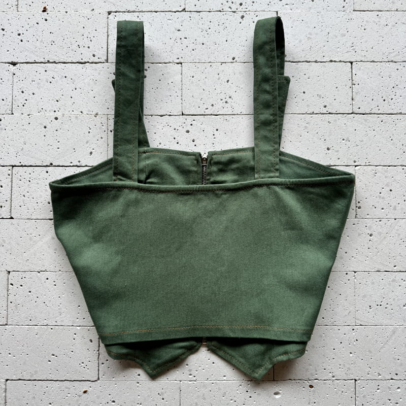 CONJUNTO COTTON CROPPED E CALÇA DETALHES EM ZIPER VERDE