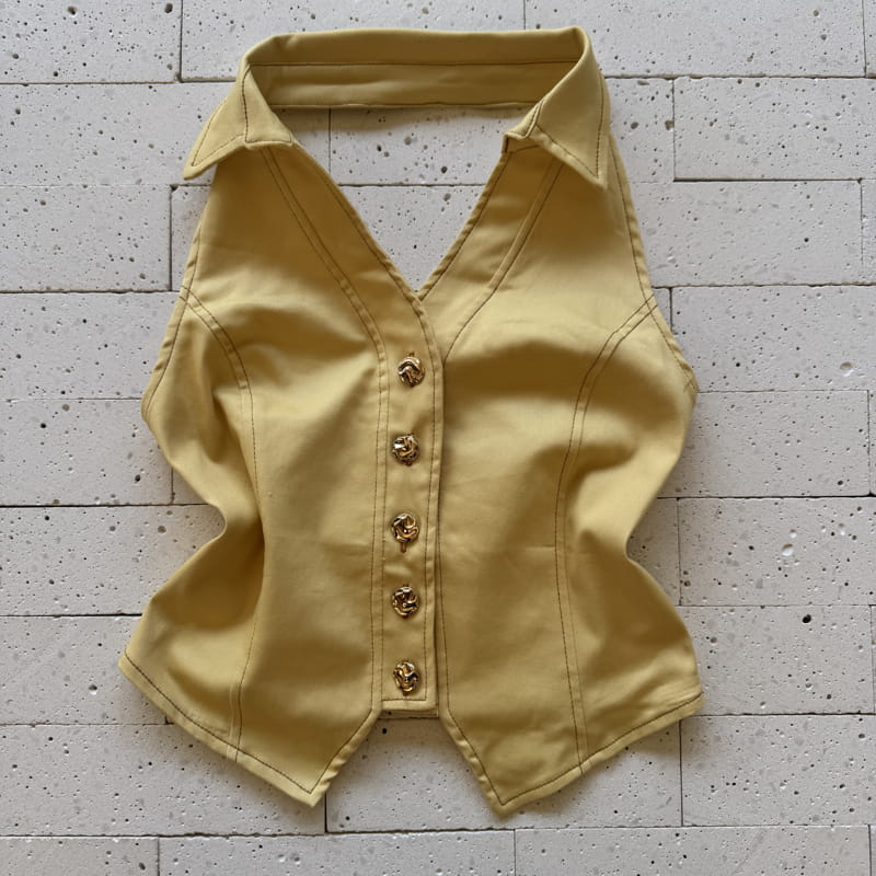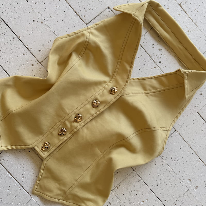 - Cropped com gola estruturada e cinco botões dourados decorativos