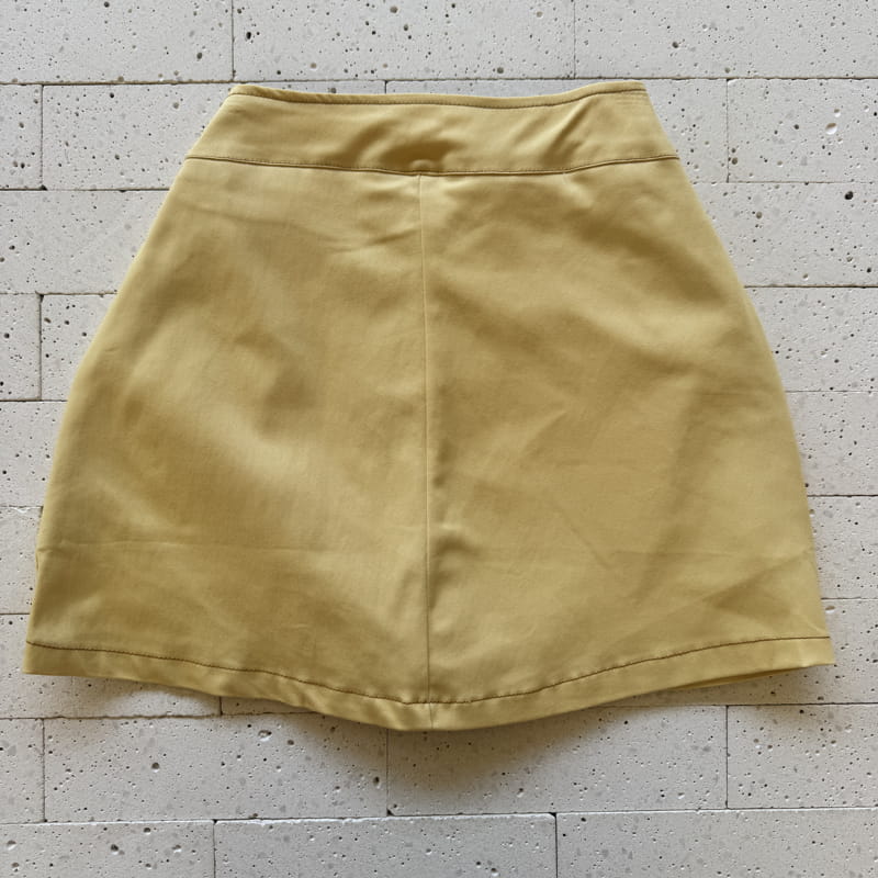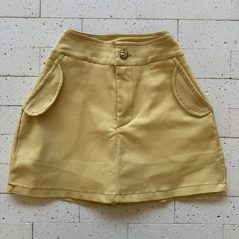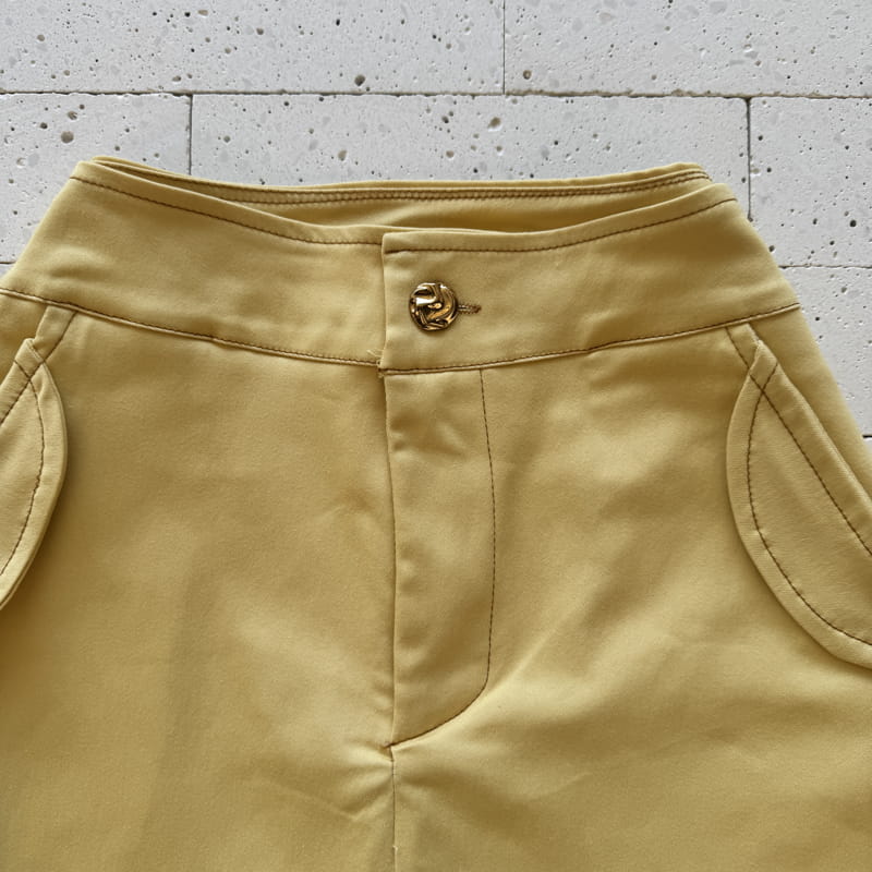 - Botão dourado frontal no cós do short saia