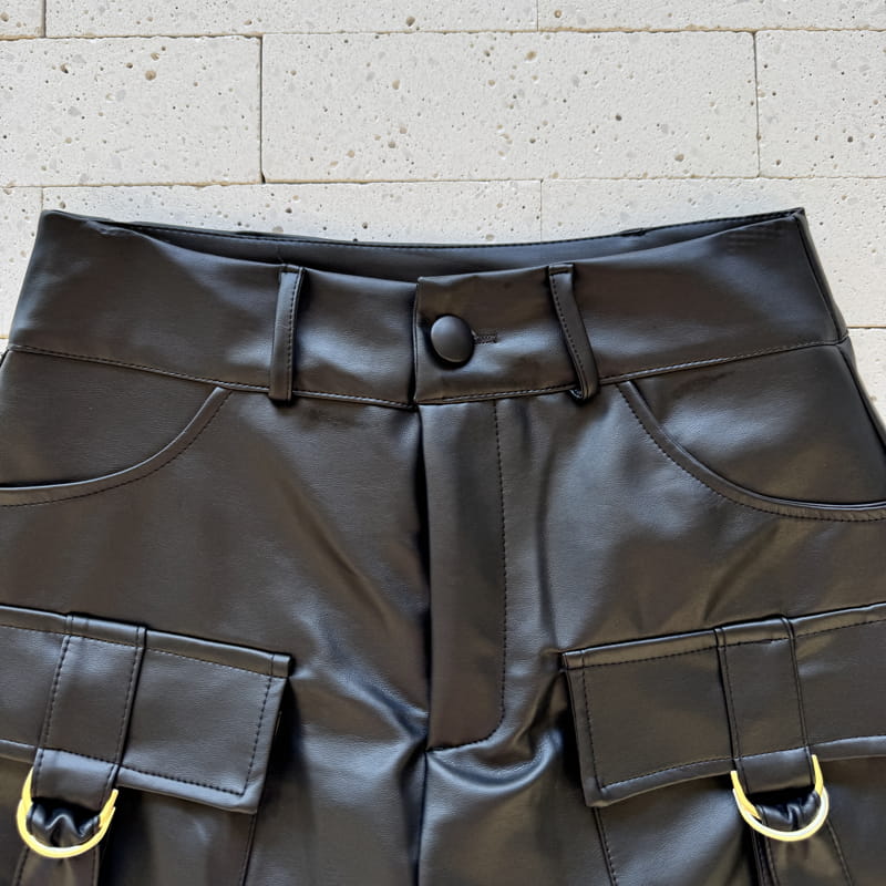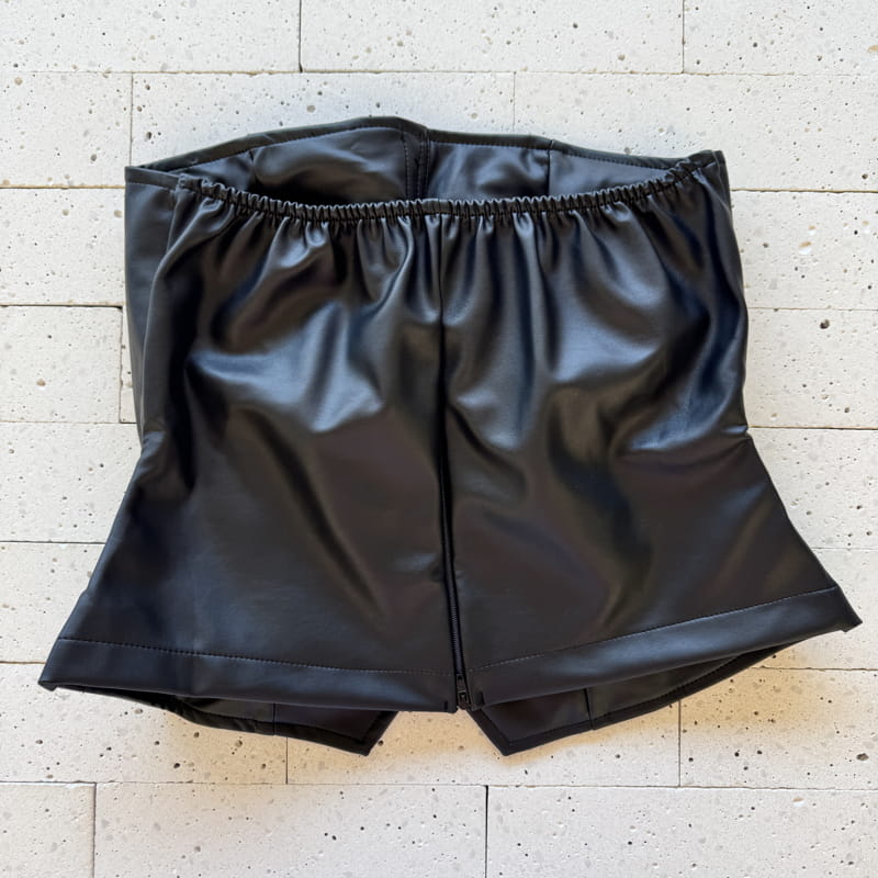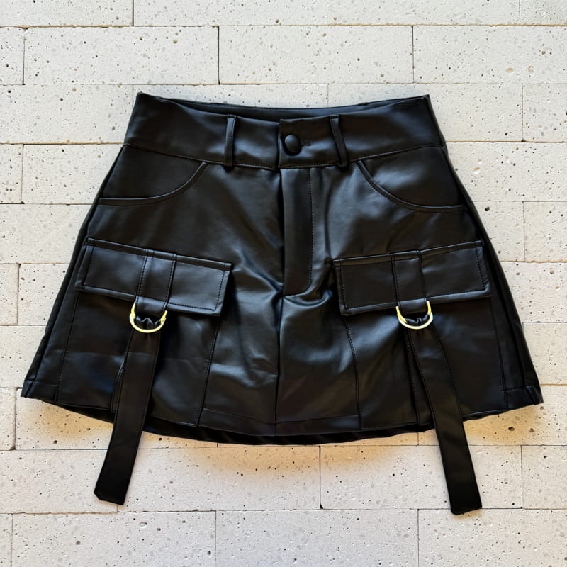 CONJUNTO COURO SINTÉTICO TOMARA QUE CAIA E SHORT SAIA CARGO PRETO – Estilo marcante em couro sintético