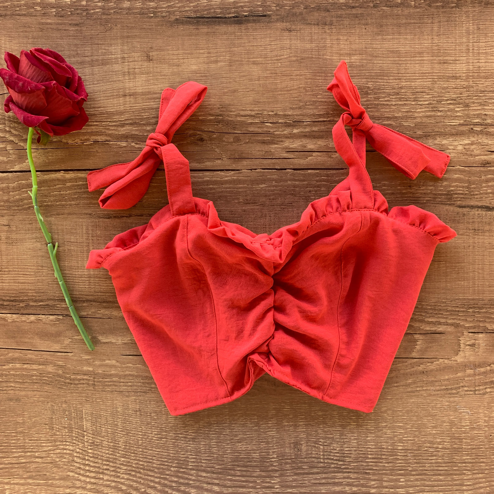 - Detalhe efeito drapeado no busto, sem bojo;