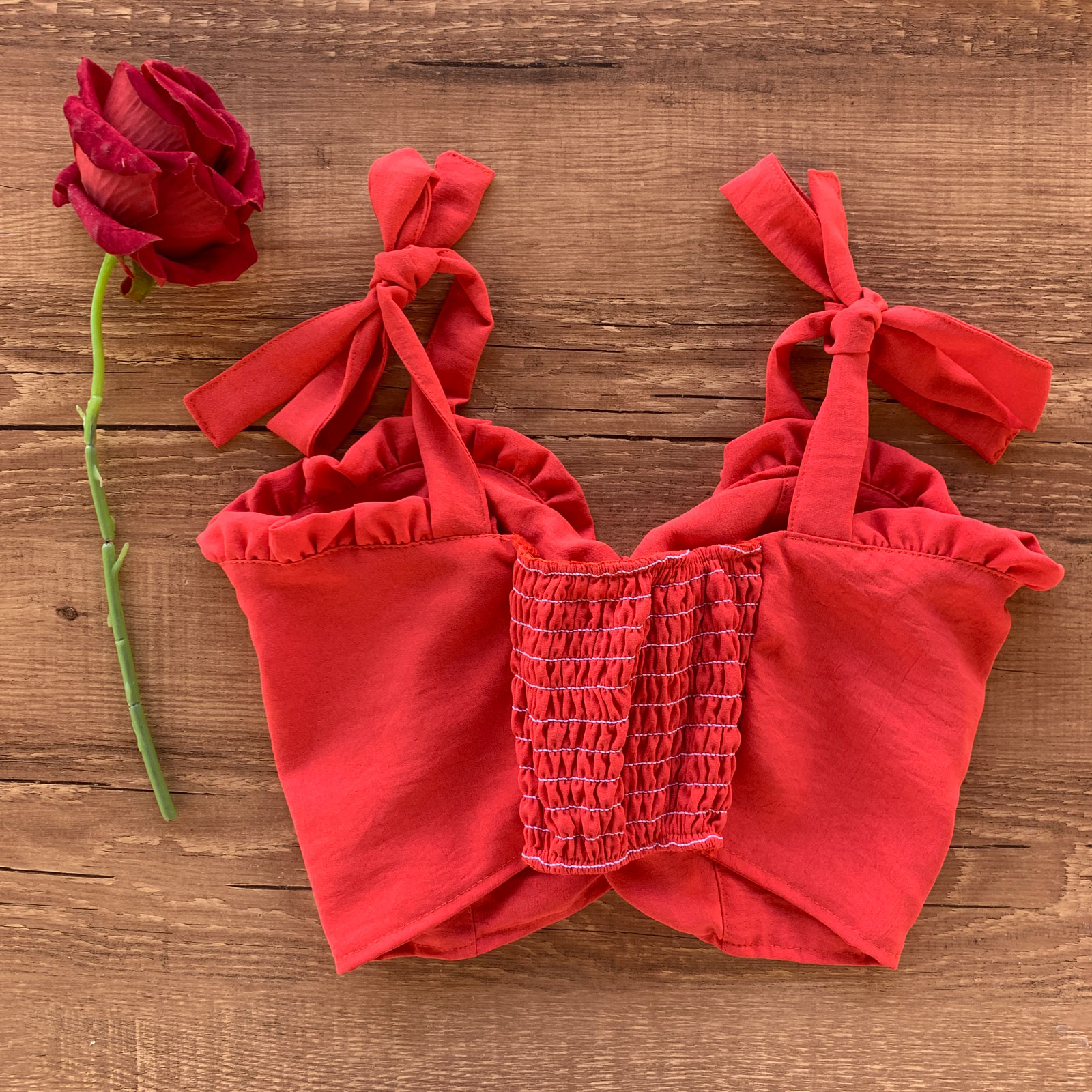 - Cropped com faixa de lastex nas costas;