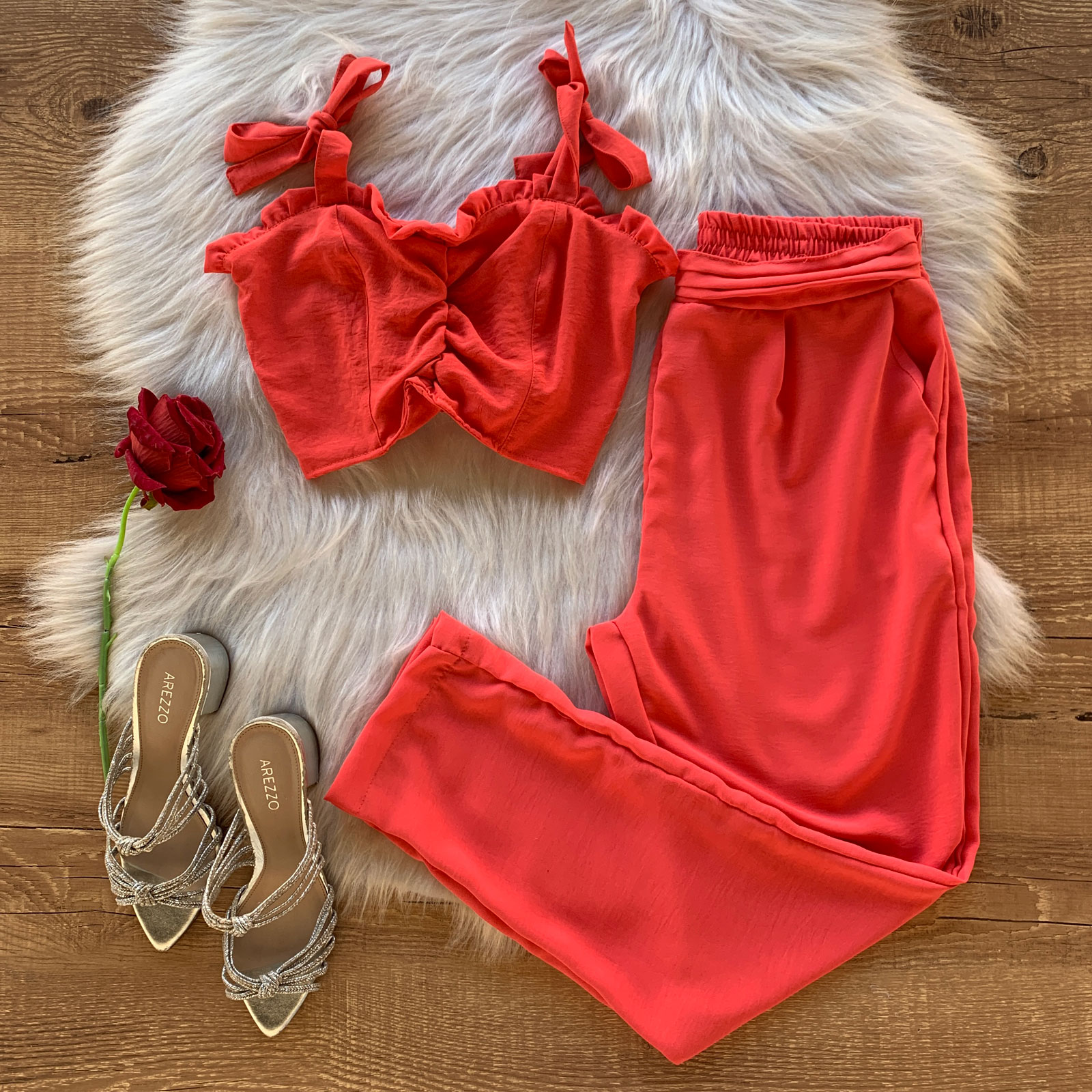 Como usar seu Conjunto Crepe Cropped Babados e Calça Laranja