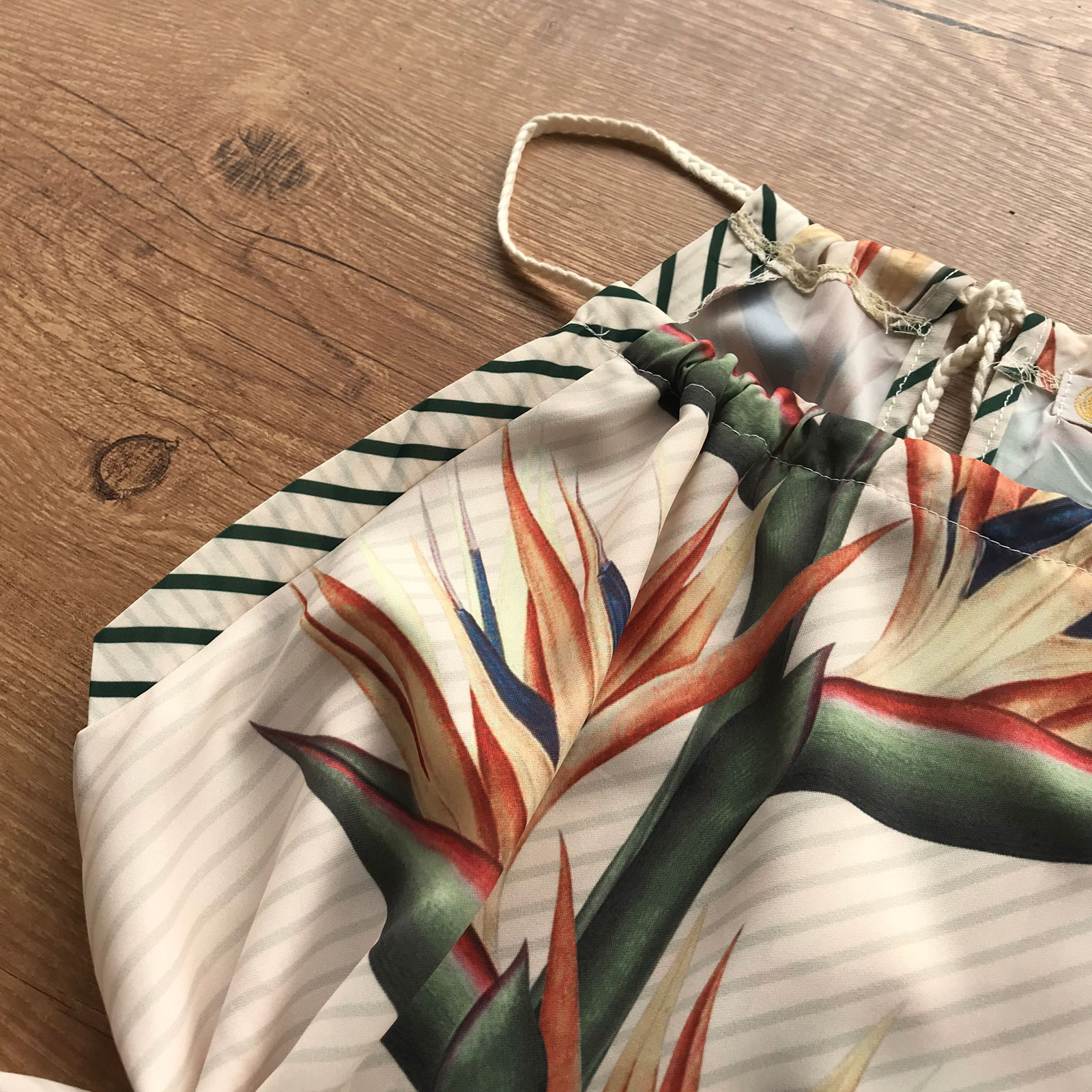- Alça cordão com amarração ajustável;