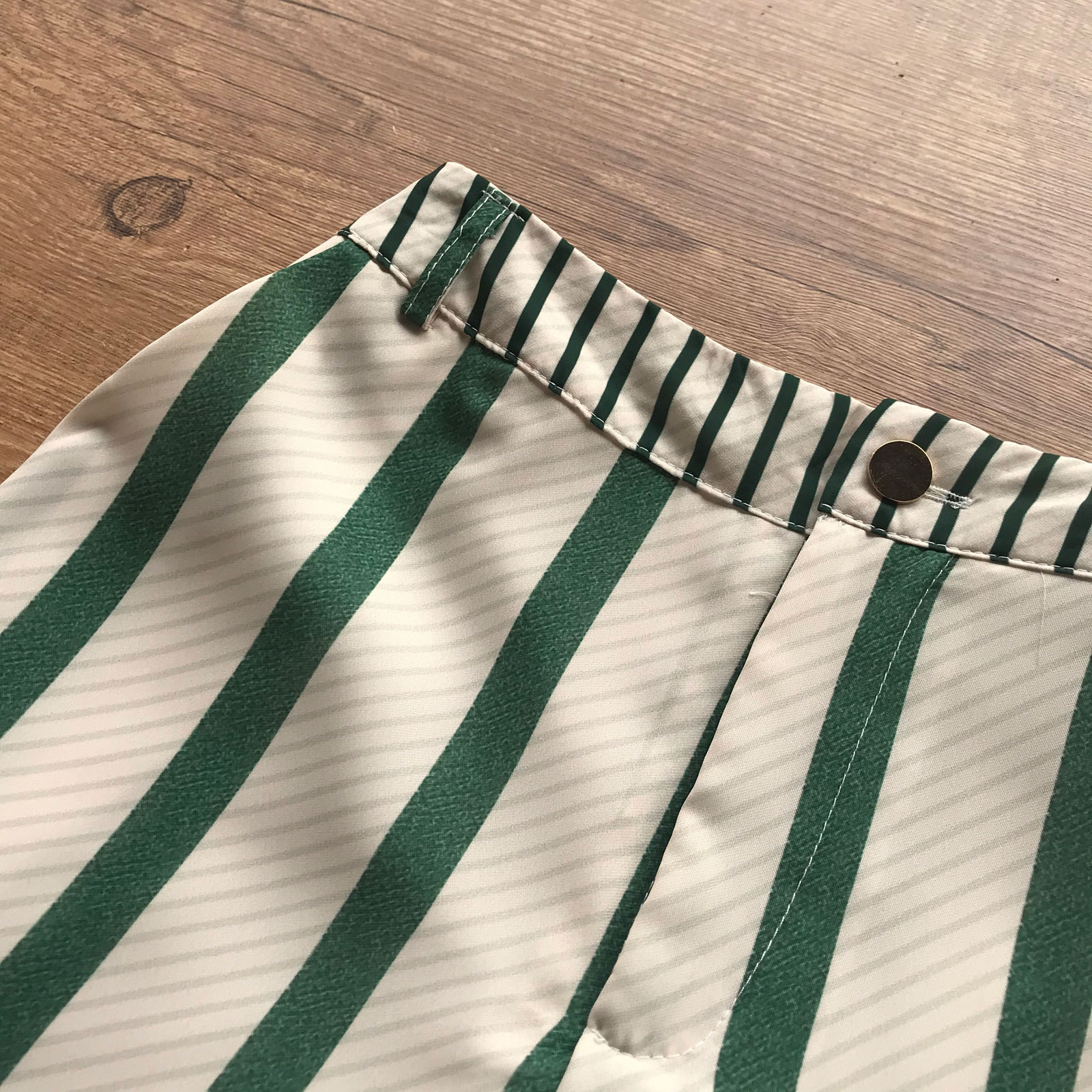 - Fechamento com botão e zíper frontal;