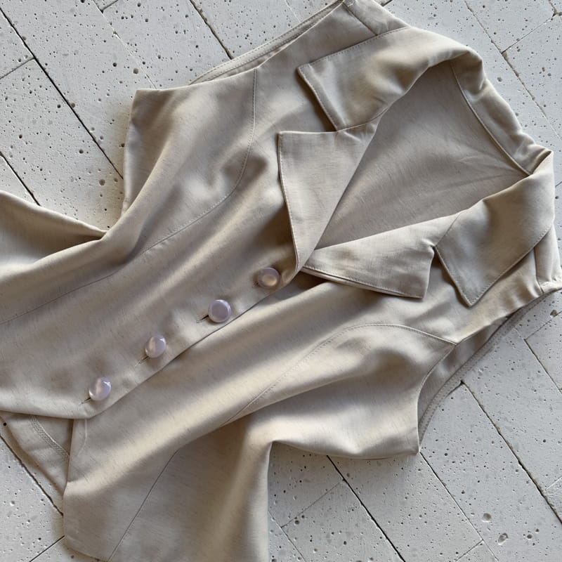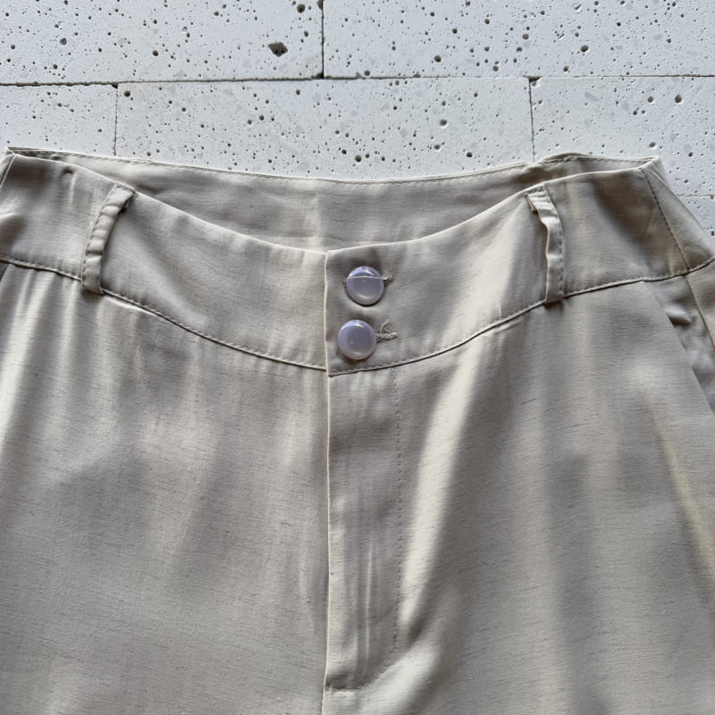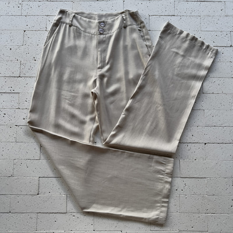CONJUNTO CROPPED GOLINHA E CALÇA PANTALONA COM BOTÕES PEROLADOS CRÚ – Elegância e Sofisticação
