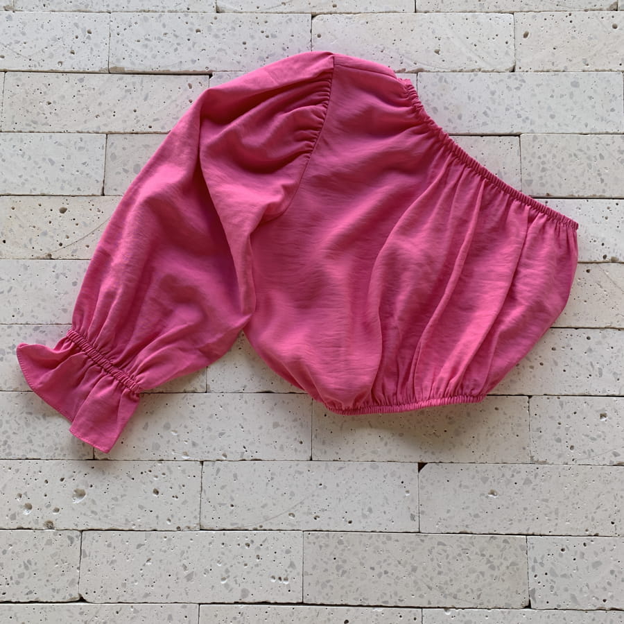 - Possui decote assimétrico (um ombro só) com detalhe em elástico;