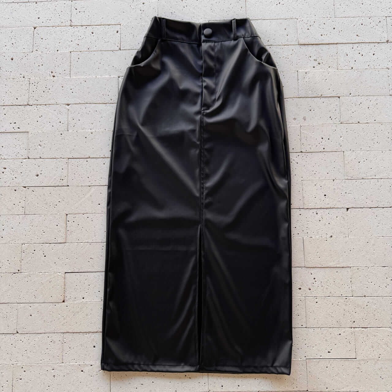 Adicione já o CONJUNTO DE COURO SINTÉTICO CROPPED E SAIA MIDI COM FENDA PRETO ao seu guarda-roupa e aproveite: Envio Rápido e pagamento em até 12x sem juros!