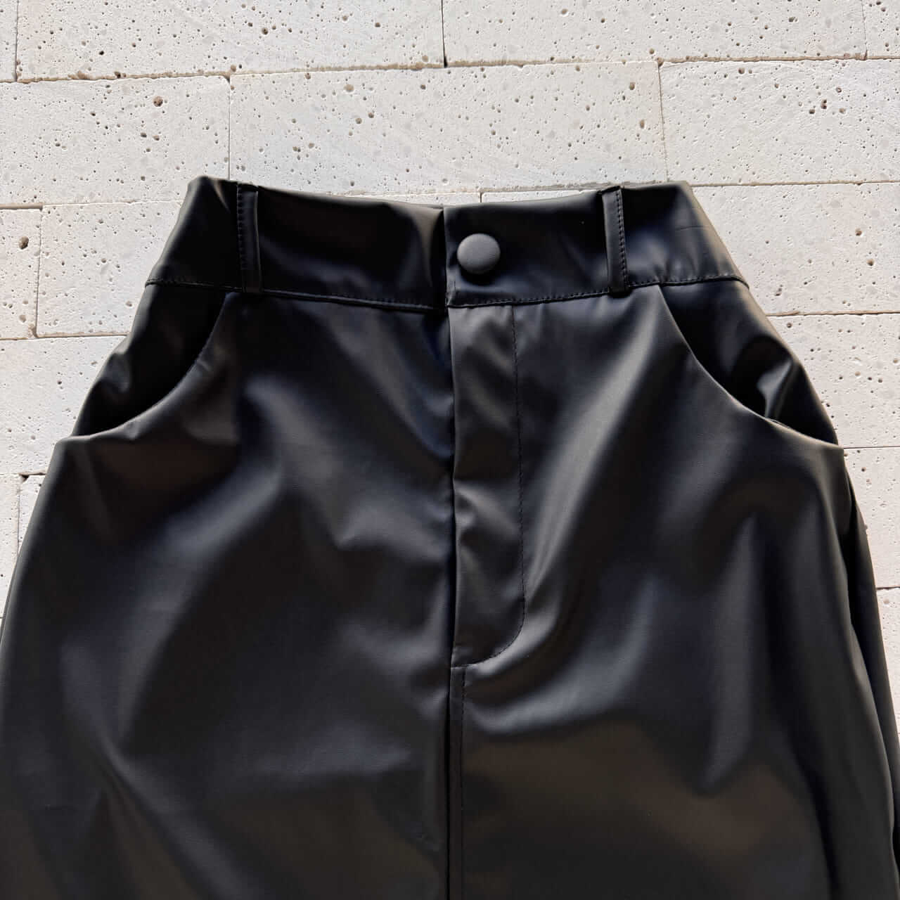 CONJUNTO DE COURO SINTÉTICO CROPPED E SAIA MIDI COM FENDA PRETO – Sofisticação Moderna e Marcante