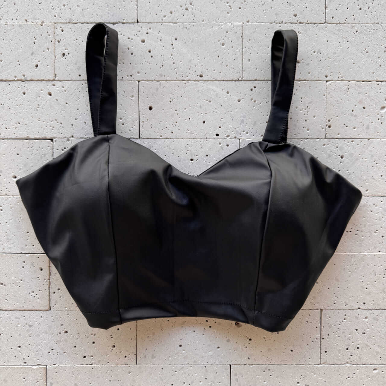 - Cropped: Alças largas, modelagem estruturada e sem bojo