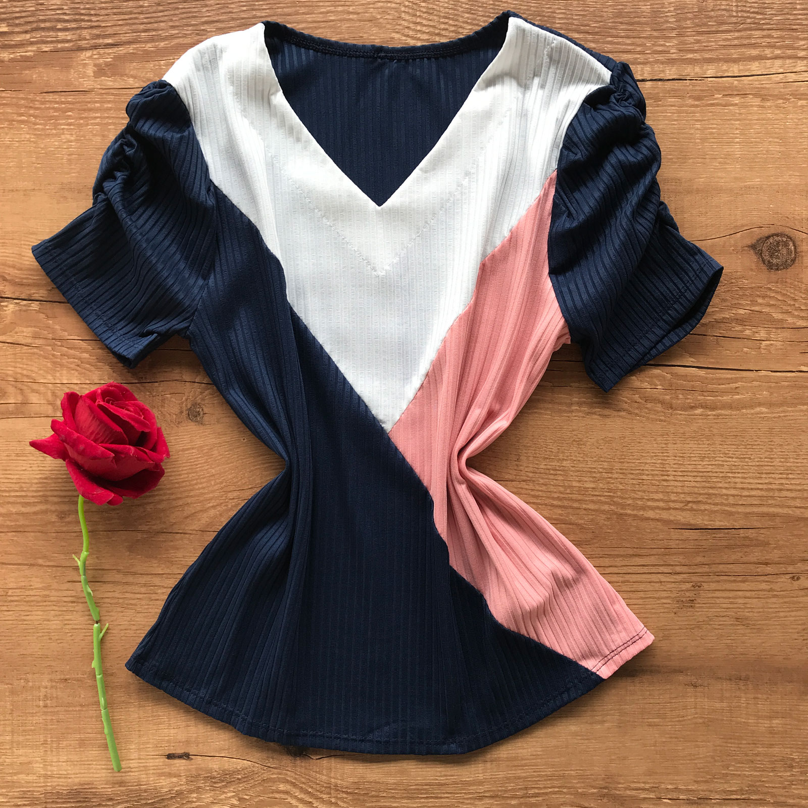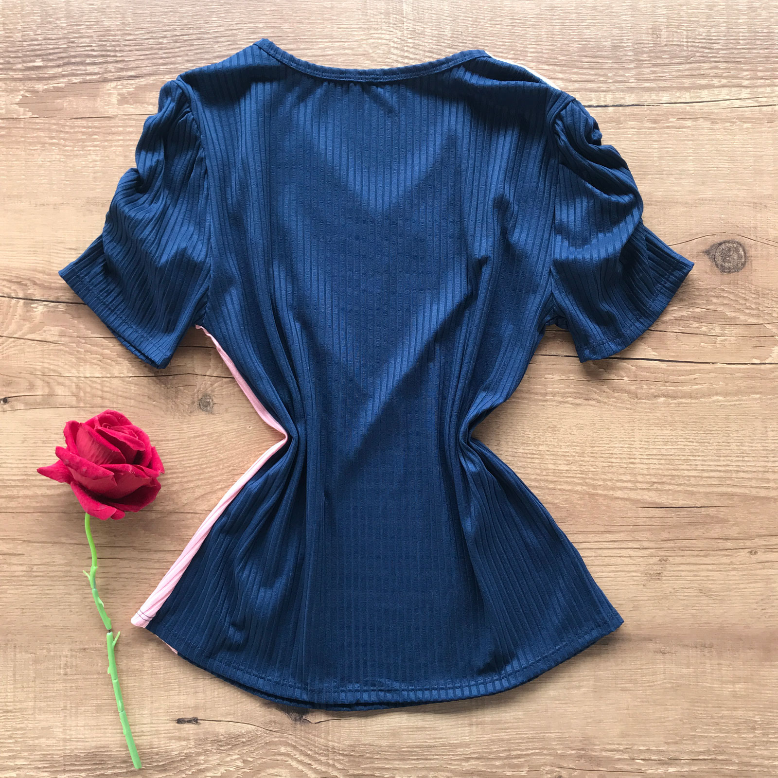 Como usar seu Conjunto Feminino Canelado Recortes Em V Manga Curta Azul Marinho