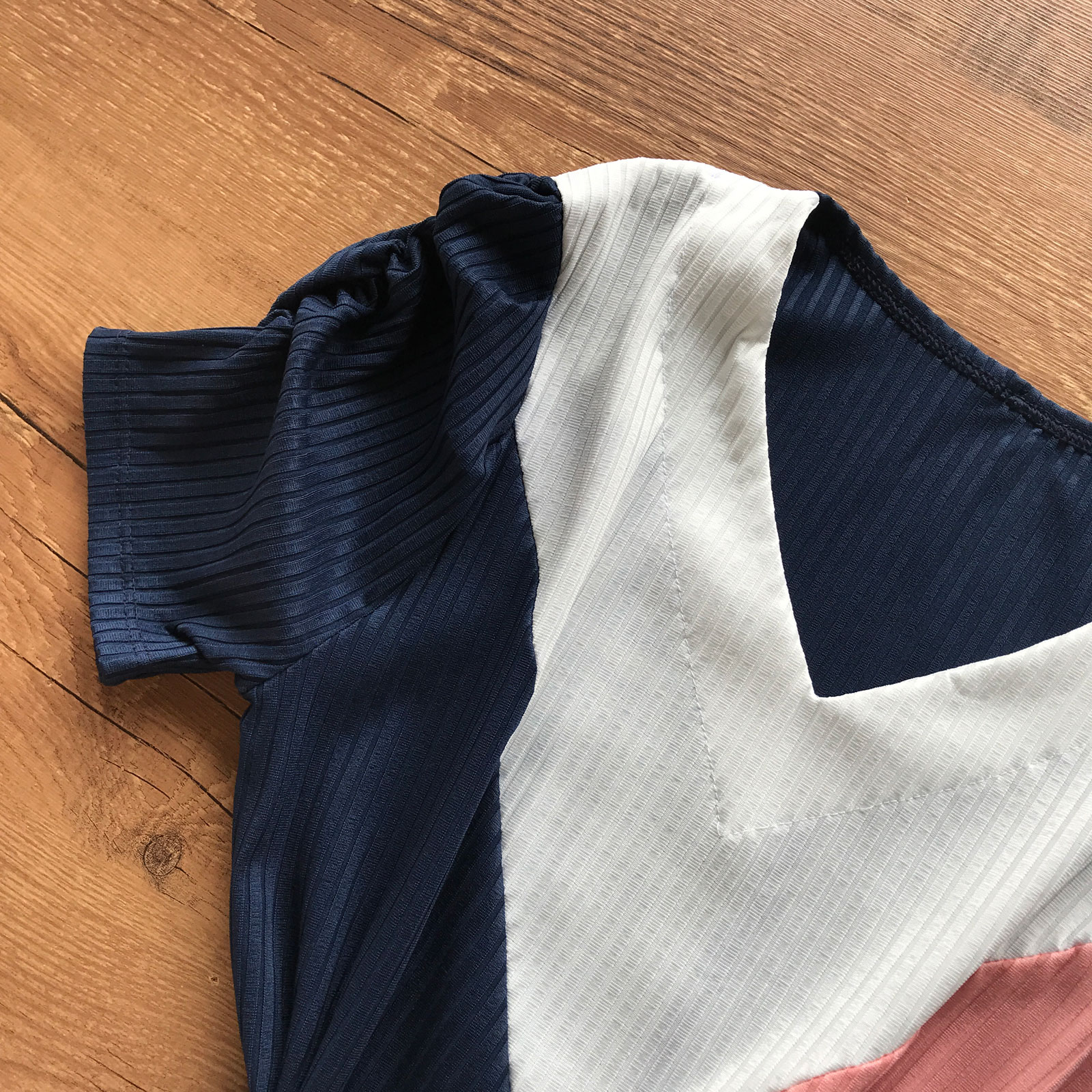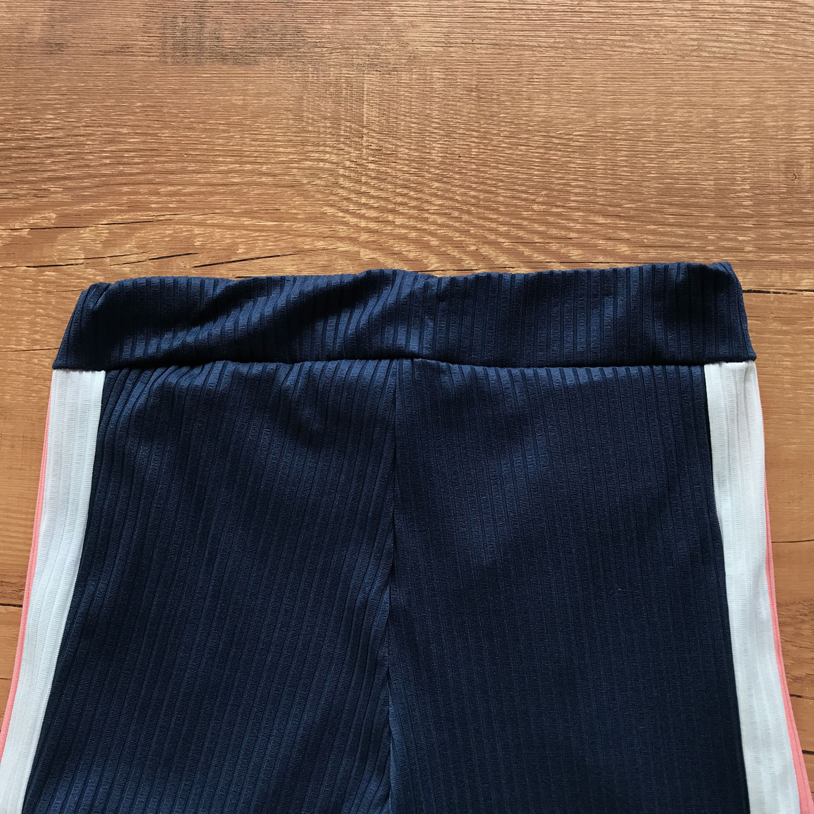 CONJUNTO FEMININO CANELADO RECORTES EM V MANGA CURTA AZUL MARINHO