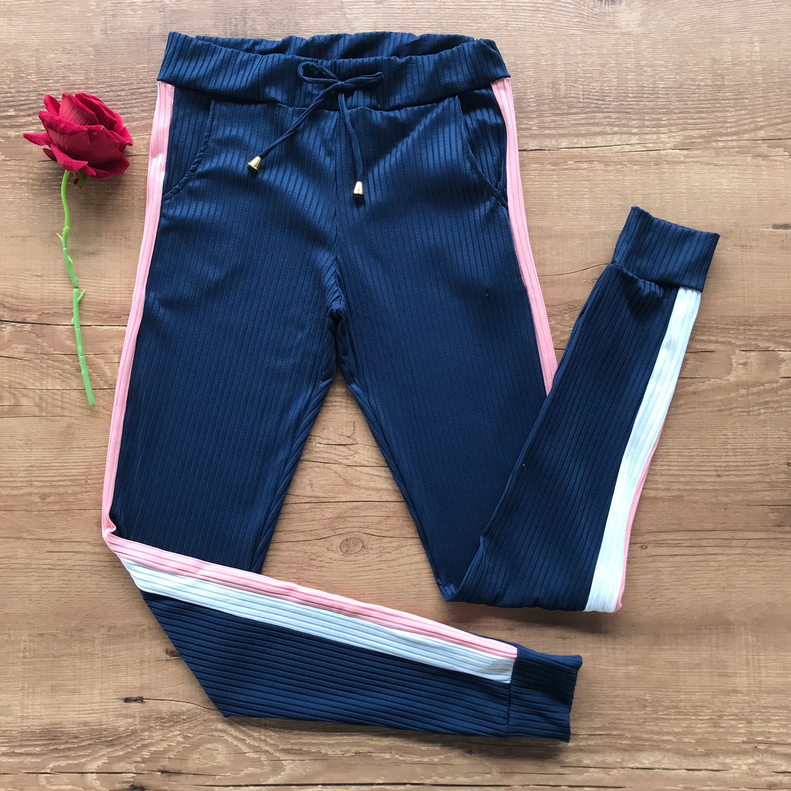 - Modelo: Conjunto feminino composto por calça e t-shirt;