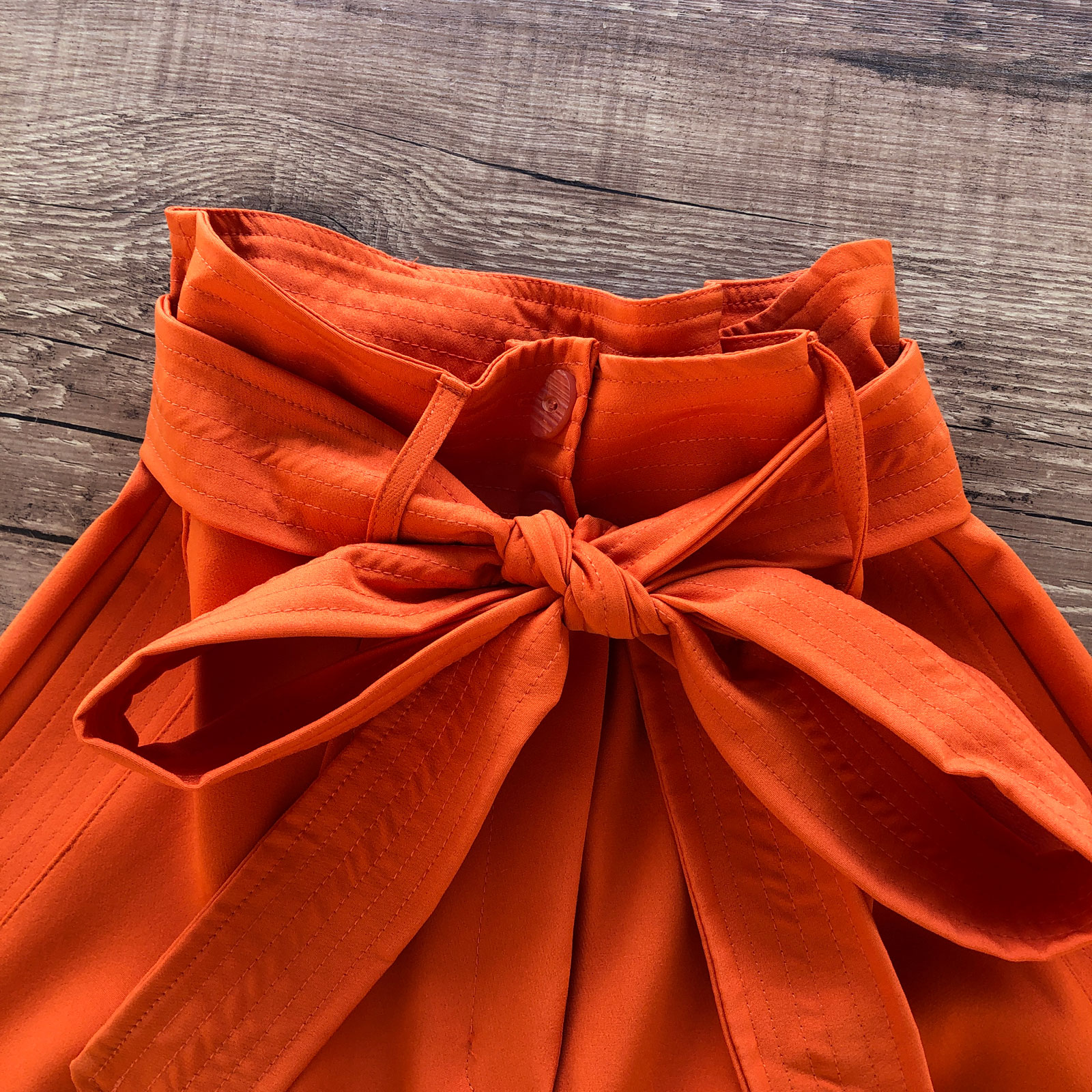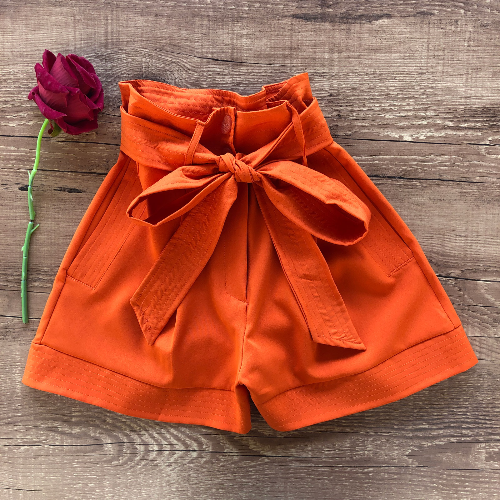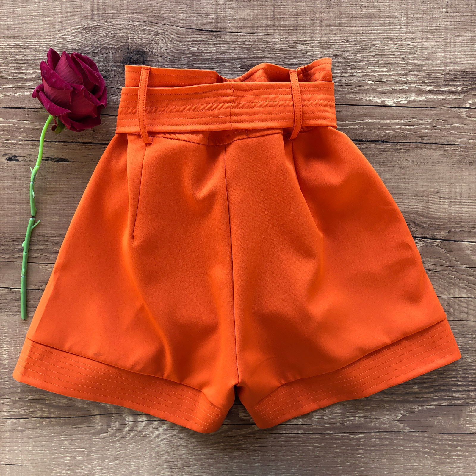 CONJUNTO FEMININO GOLA V E SHORT COM AMARRAÇÃO LARANJA