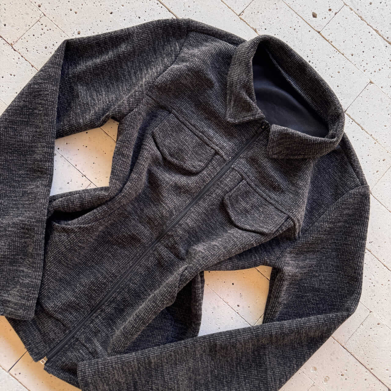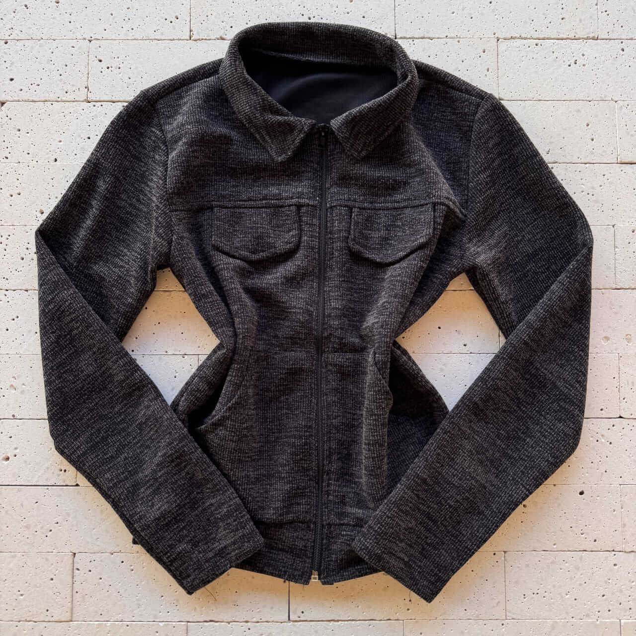- Blusa com zíper frontal e gola estruturada