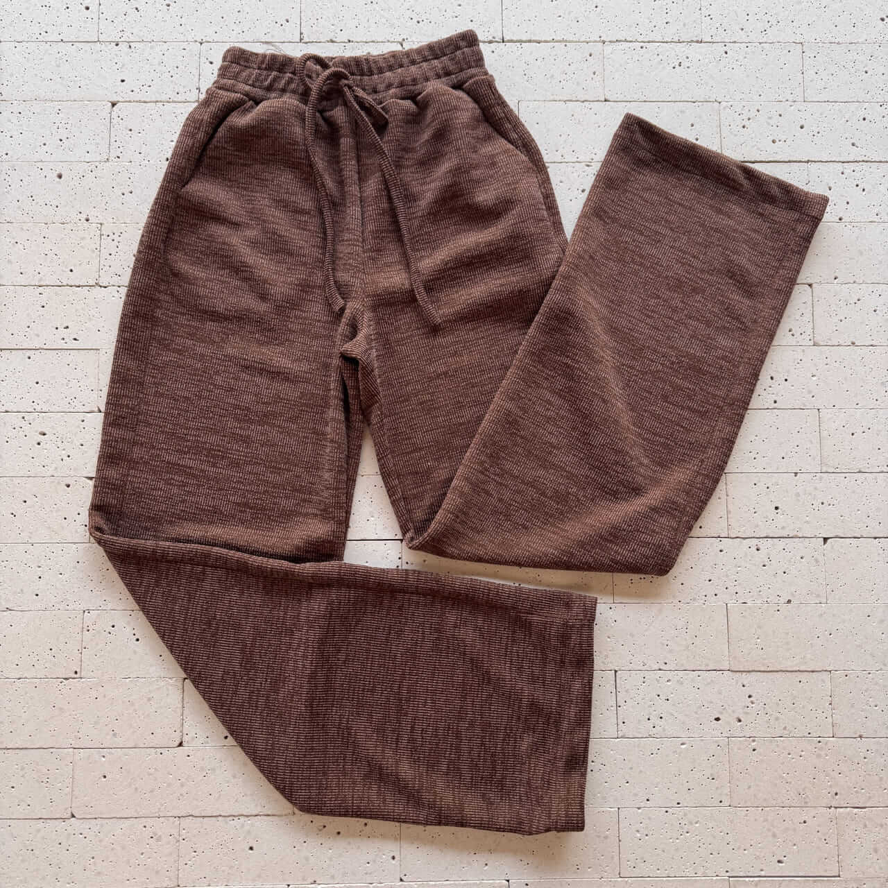 CONJUNTO LANZINHA BLUSA DETALHE BOLSOS E PANTALONA MARROM – Conforto Elegante em Tons Neutros