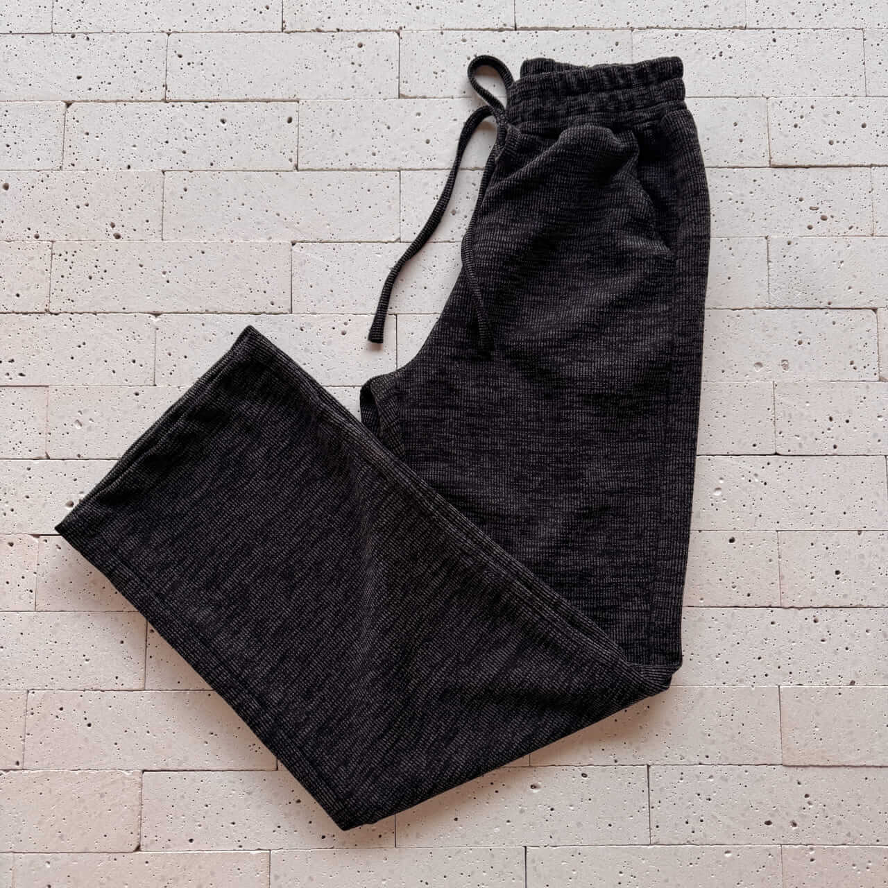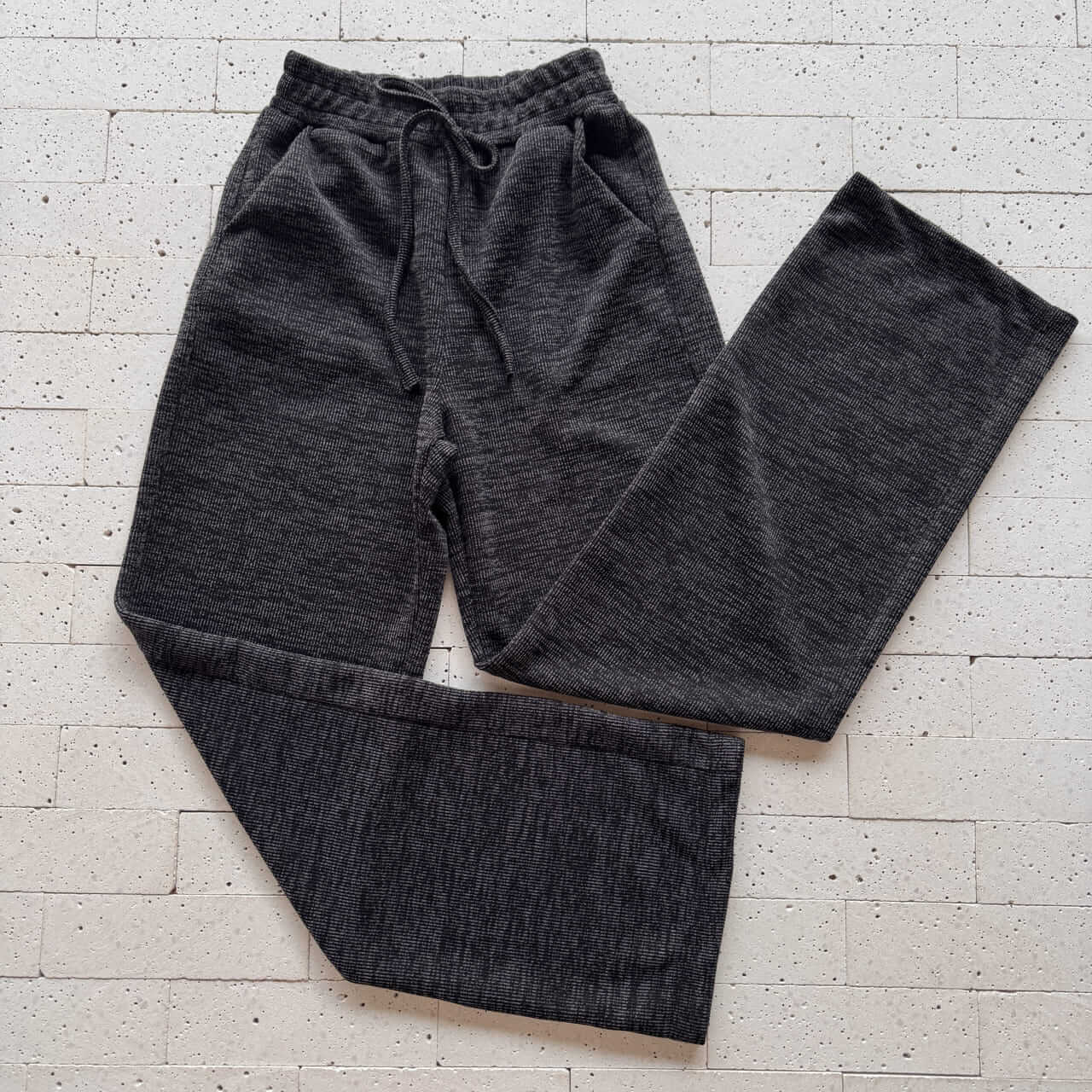 O conjunto em malha canelada tipo “lanzinha” na cor preta combina conforto e elegância em uma proposta moderna e versátil. A blusa possui gola alta e modelagem ajustada com recortes laterais estratégicos que valorizam a silhueta, além de mangas longas que trazem um toque sofisticado. A calça pantalona apresenta caimento solto, cós com elástico e ajuste por amarração, além de bolsos funcionais que garantem praticidade. O tecido com elastano proporciona excelente adaptação ao corpo, oferecendo liberdade de movimento sem perder o estilo.