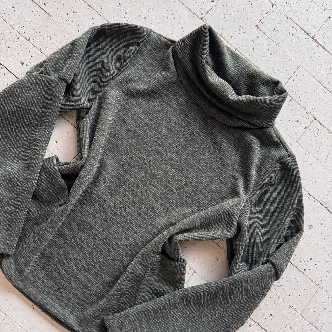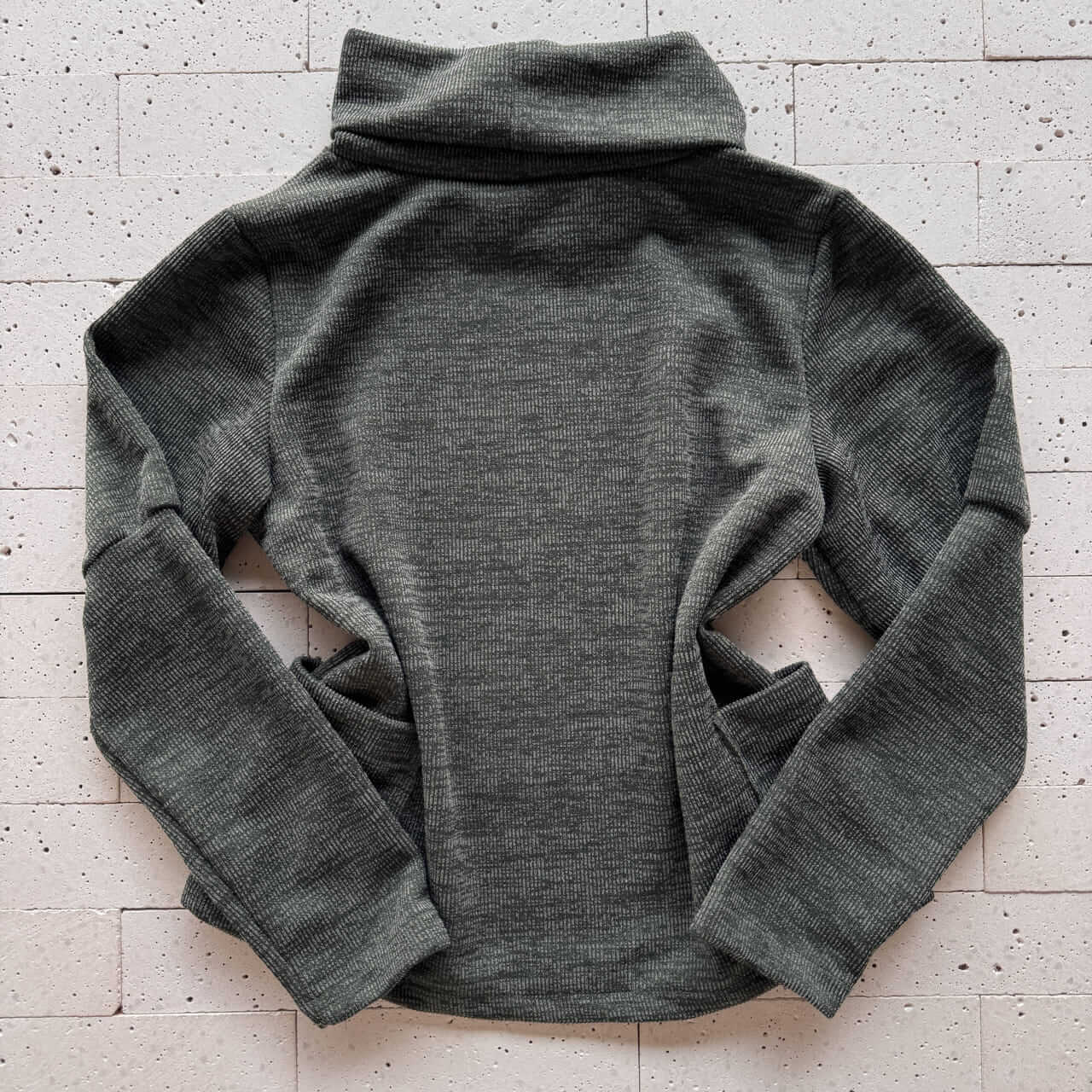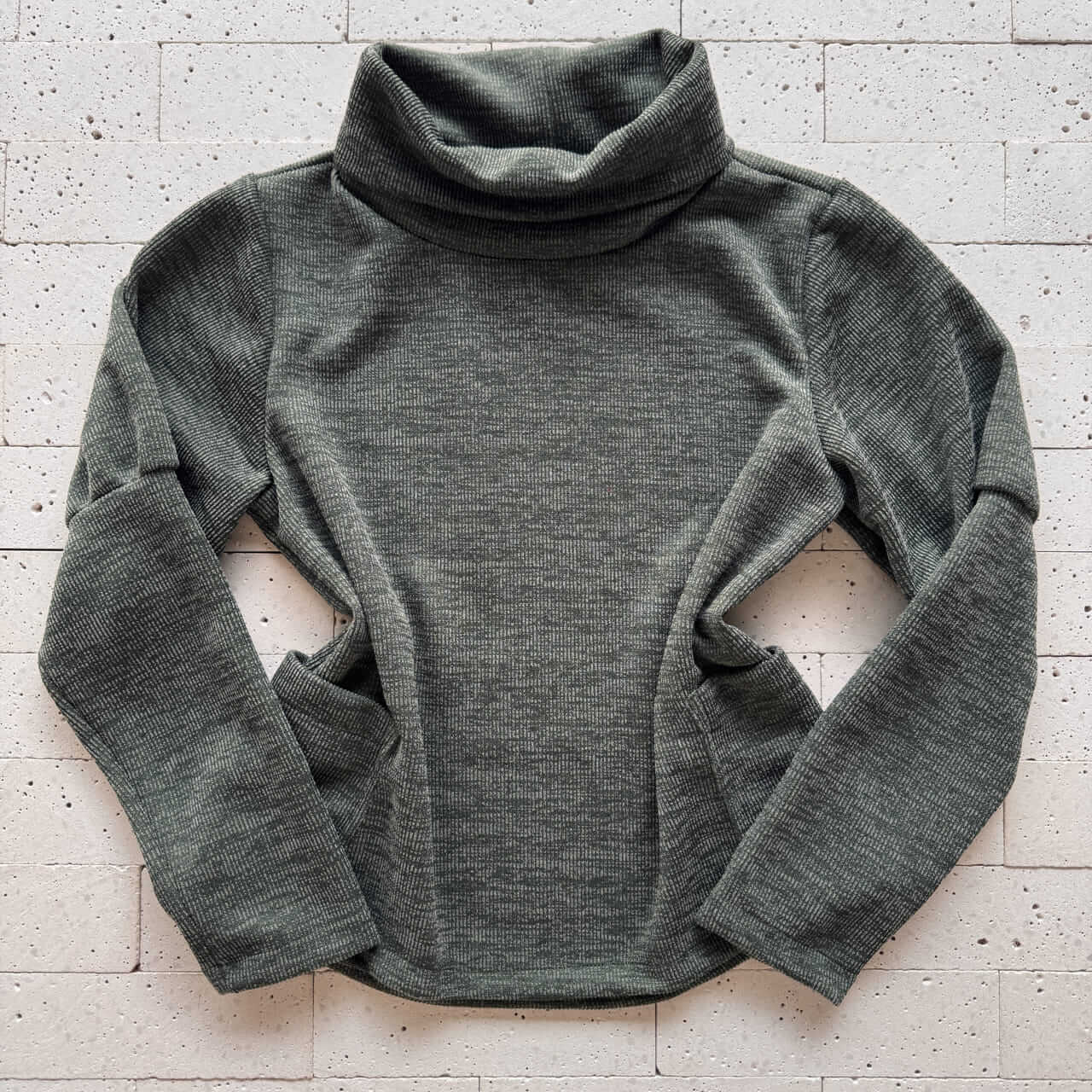- Blusa: Gola alta e modelagem ajustada