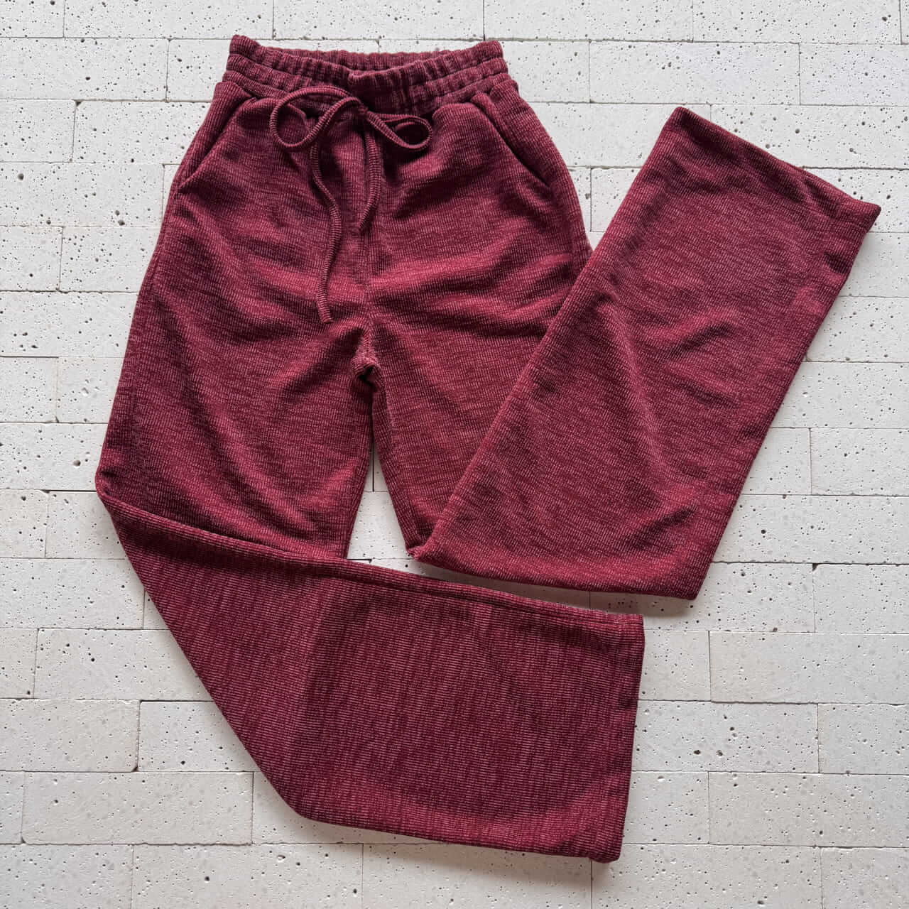 CONJUNTO LANZINHA BLUSA DETALHE BOLSOS E PANTALONA VINHO – Elegância Aconchegante e Sofisticada