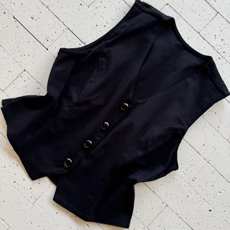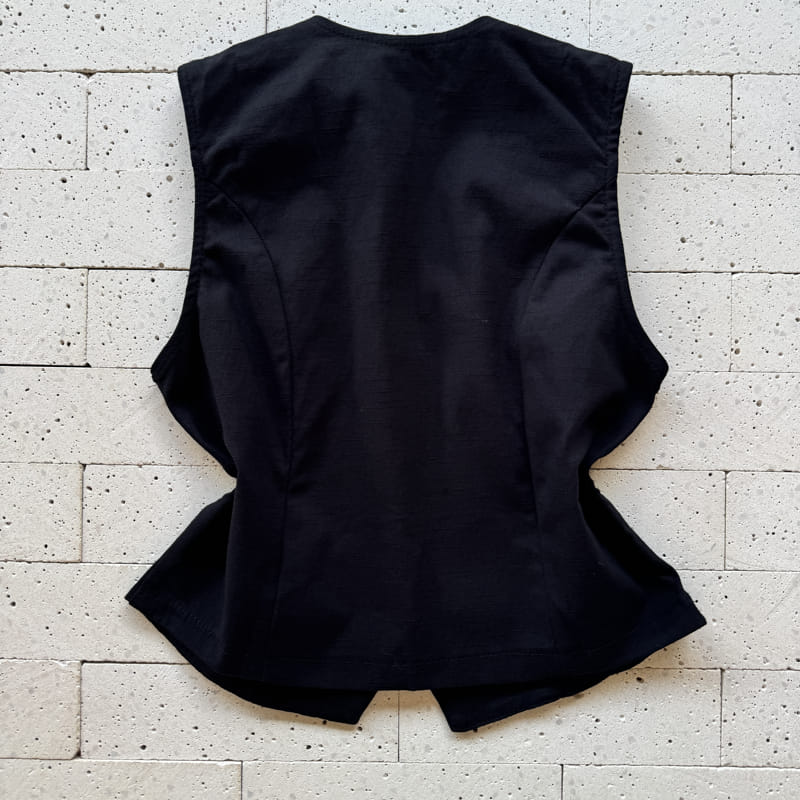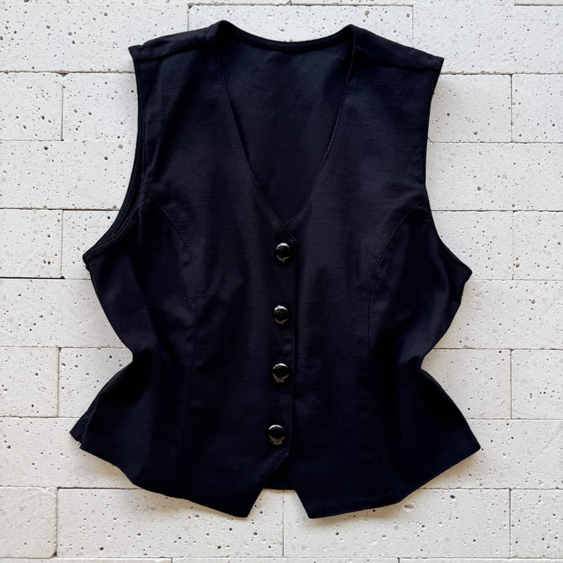 Conjunto Linho Colete e Short com Botões Perolados Preto – Elegância Atemporal