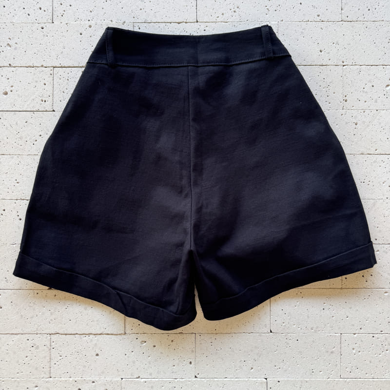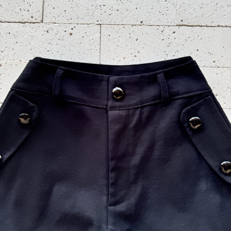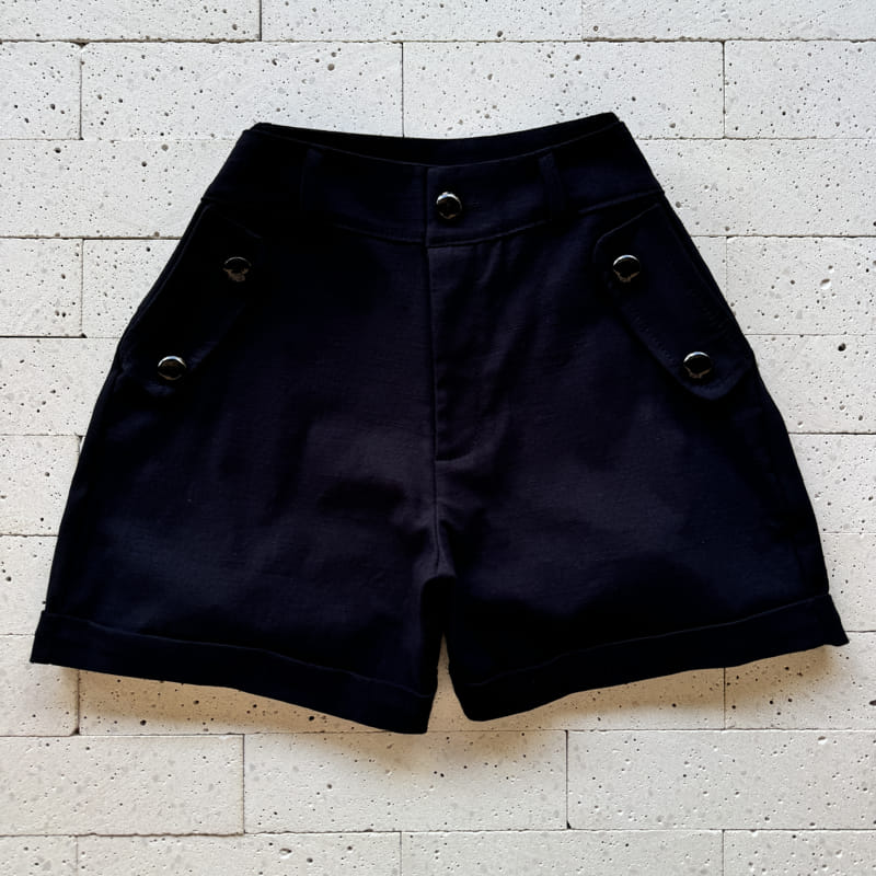 CONJUNTO LINHO COLETE E SHORT COM BOTÕES PEROLADOS PRETO