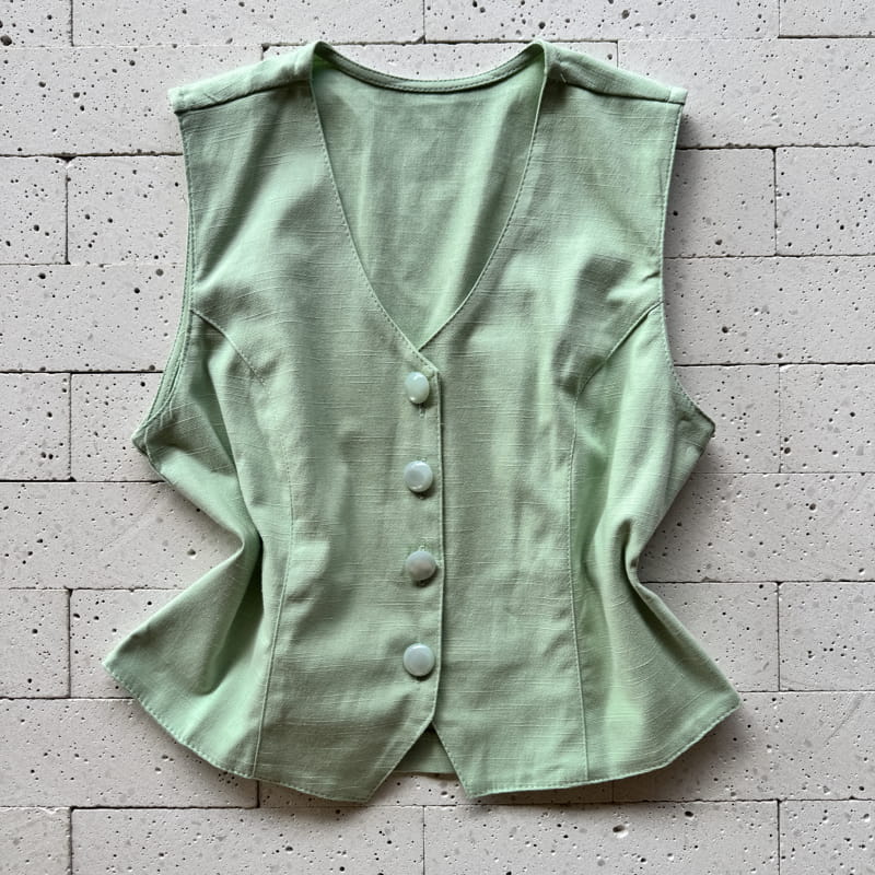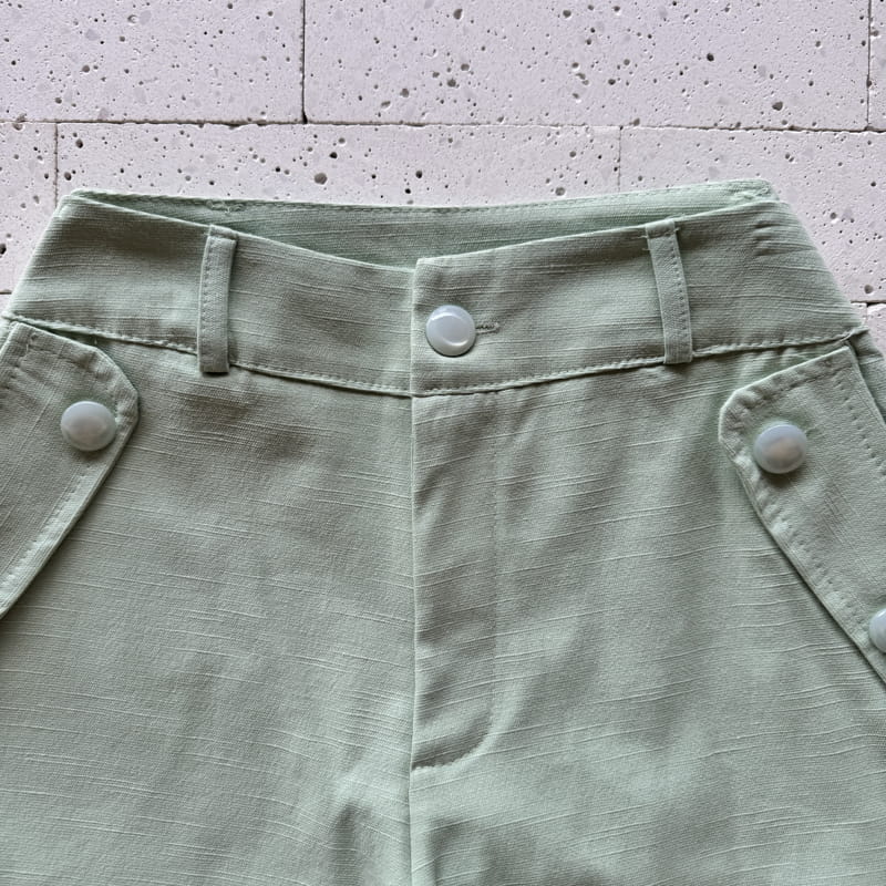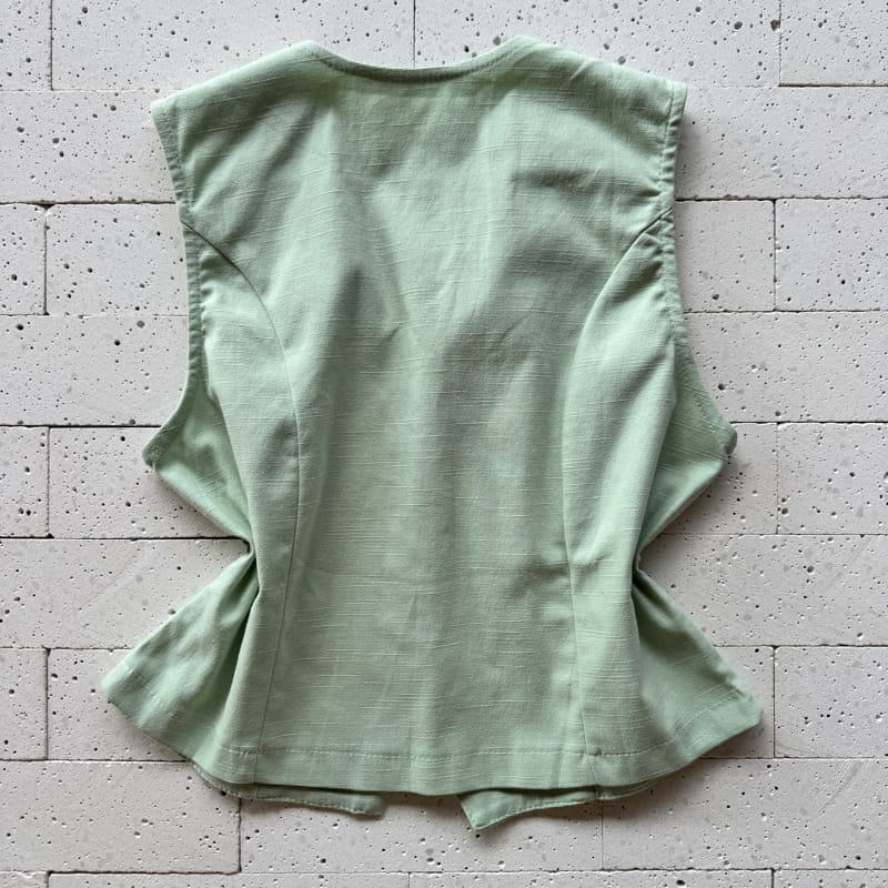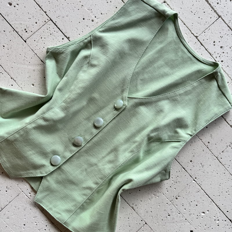 Conjunto Linho Colete e Short com Botões Perolados Verde – Elegância Casual com Estilo Sofisticado