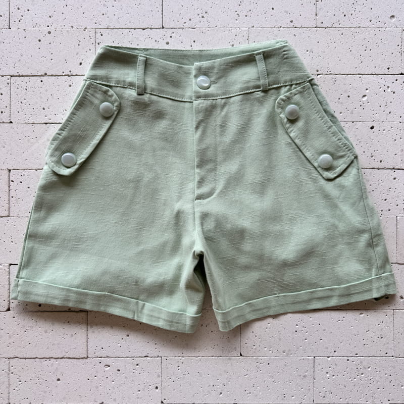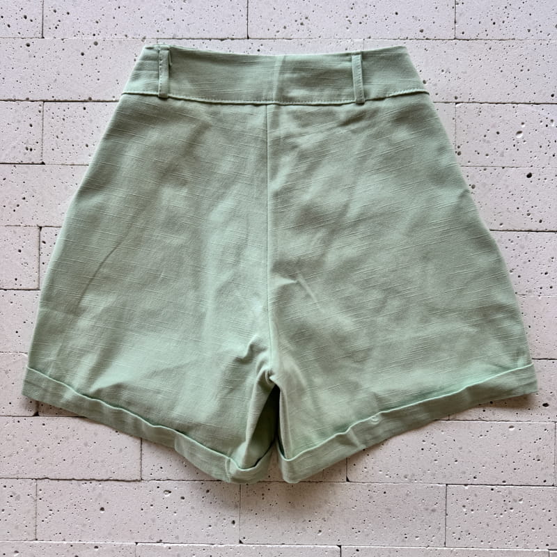 CONJUNTO LINHO COLETE E SHORT COM BOTÕES PEROLADOS VERDE